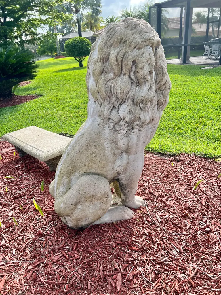 Vintage Architectural Sitting Stone Concrete Lion Statue