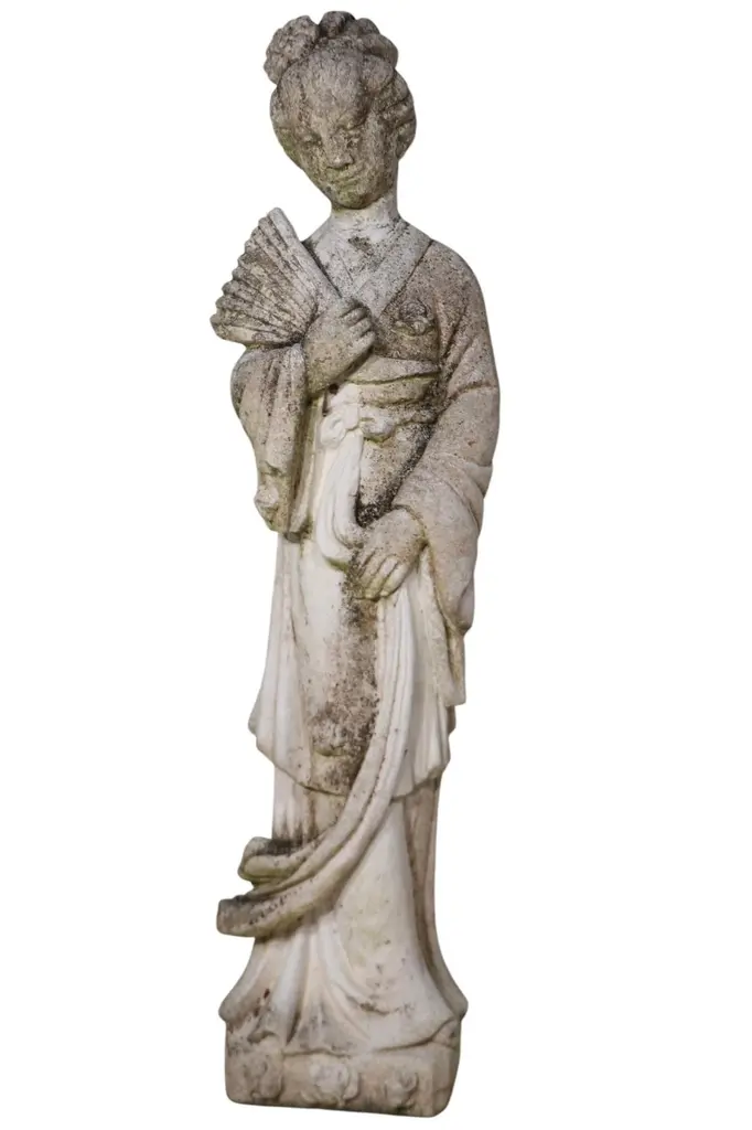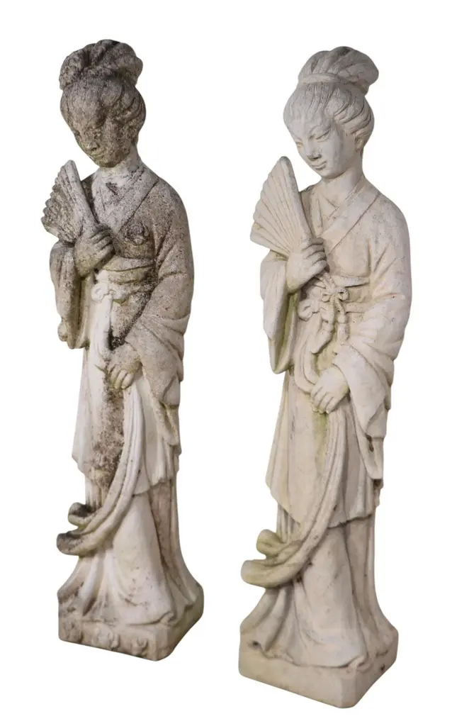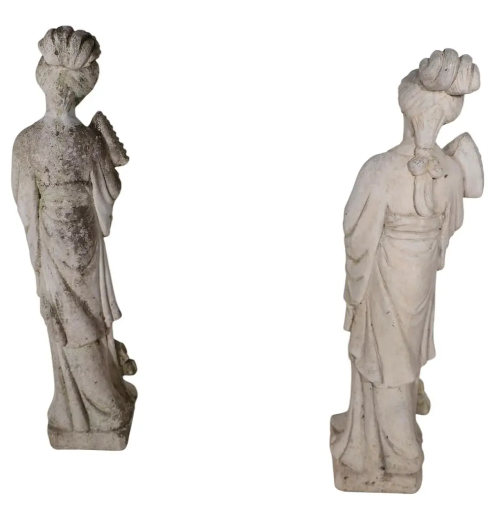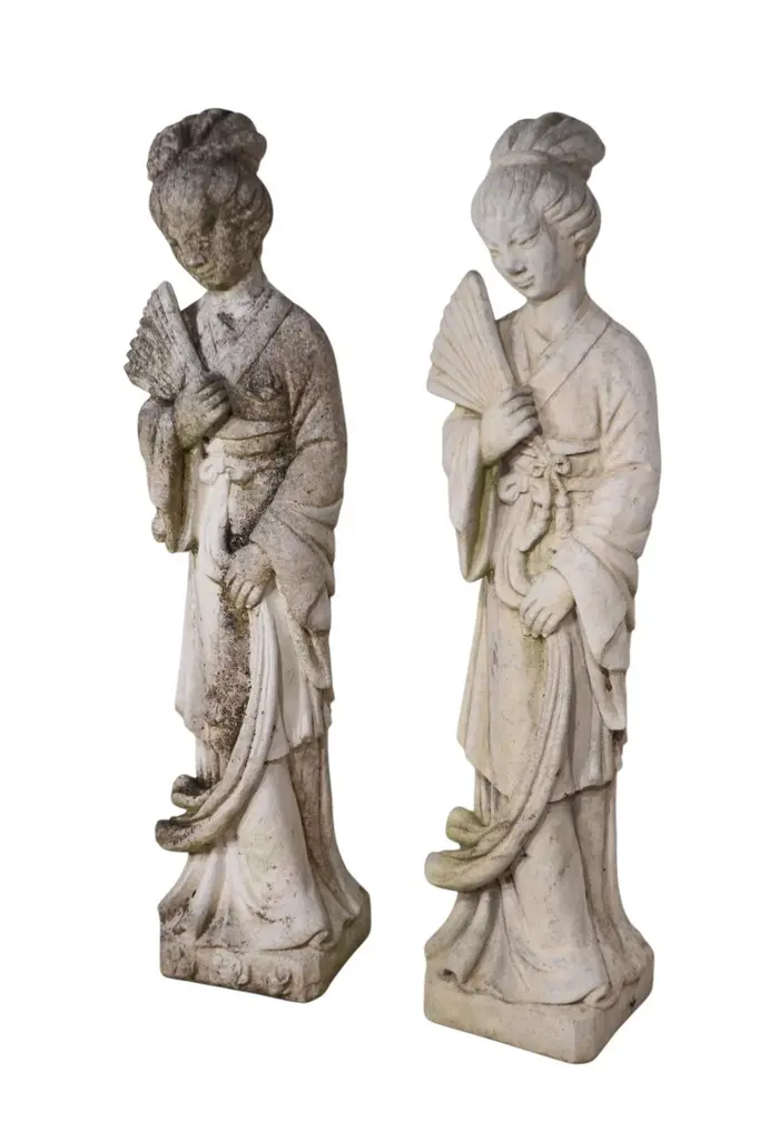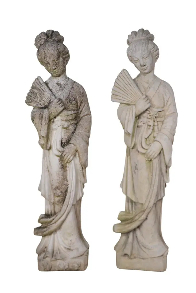 Vintage Cement Geisha Girl Statue Two Available