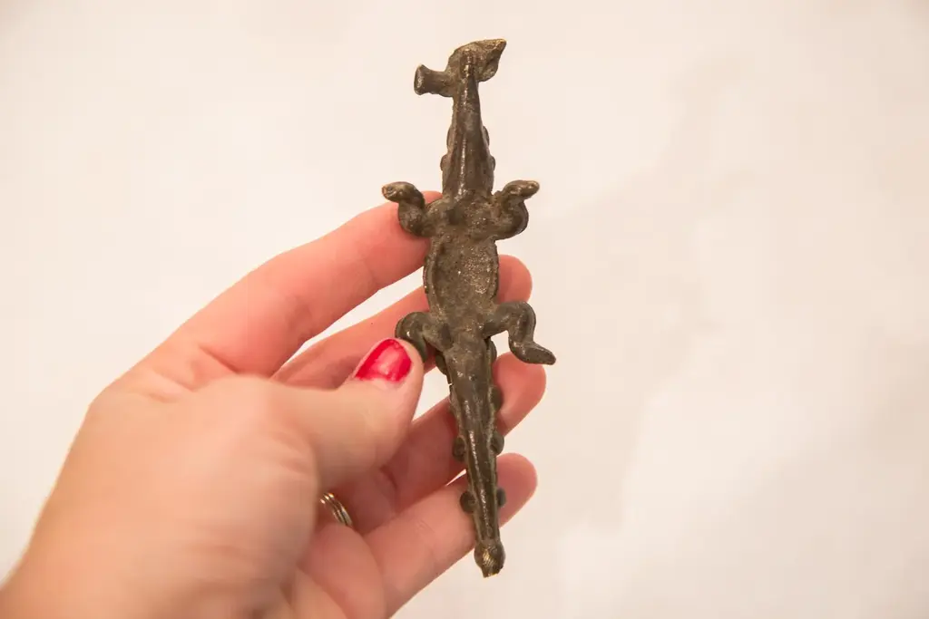 Vintage Dark Crocodile With Fish Bronze Gold Weight