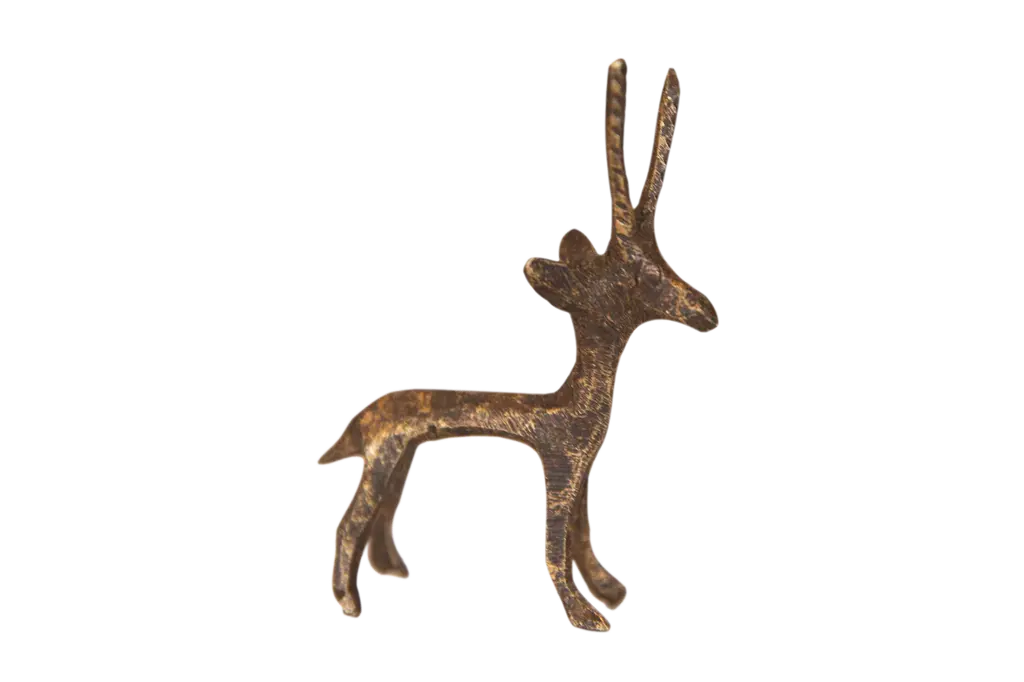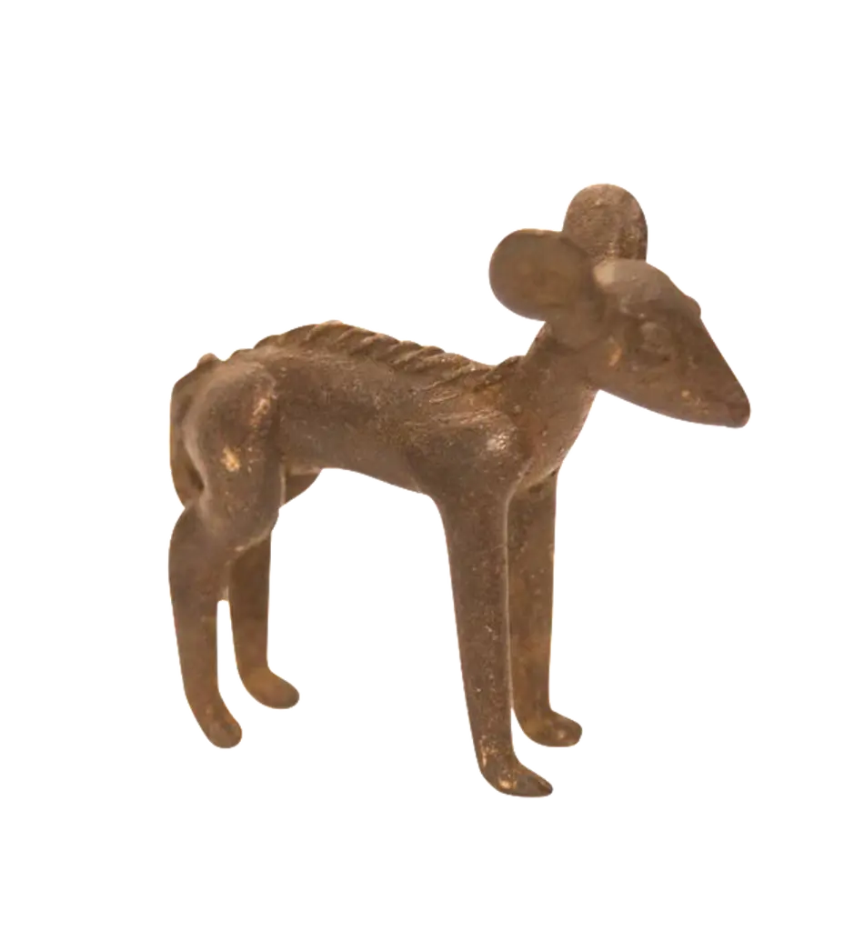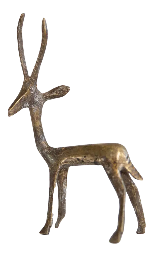 :: Vintage handmade bronze African sculpture of a ram, with shiny, iron-like patina and forward pointing curls. Circa mid 20th century and possibly older, this piece has such incredible handmade charm and no two are identical. As this item is in vintage condition, it may show signs of age and use. Ashanti gold weights are also named Mbramoo and this may be an example of an Ashanti gold weight, used in the measuring of gold and gold dust. Create a scene of wildlife with many of our vintage African animal sculptures or add just one to the shelf, these are beautiful collectibles that you or someone you love will cherish forever. Kindly note the item photographed may not necessarily be an identical to that which you receive. This listing is for a one of a kind handmade item, however, we do have multiples which are being sold under one parent listing. Minor and subtle differences may apply to the finish, dimensions, slight imperfections, and in some cases a male or female being substituted interchangeably.