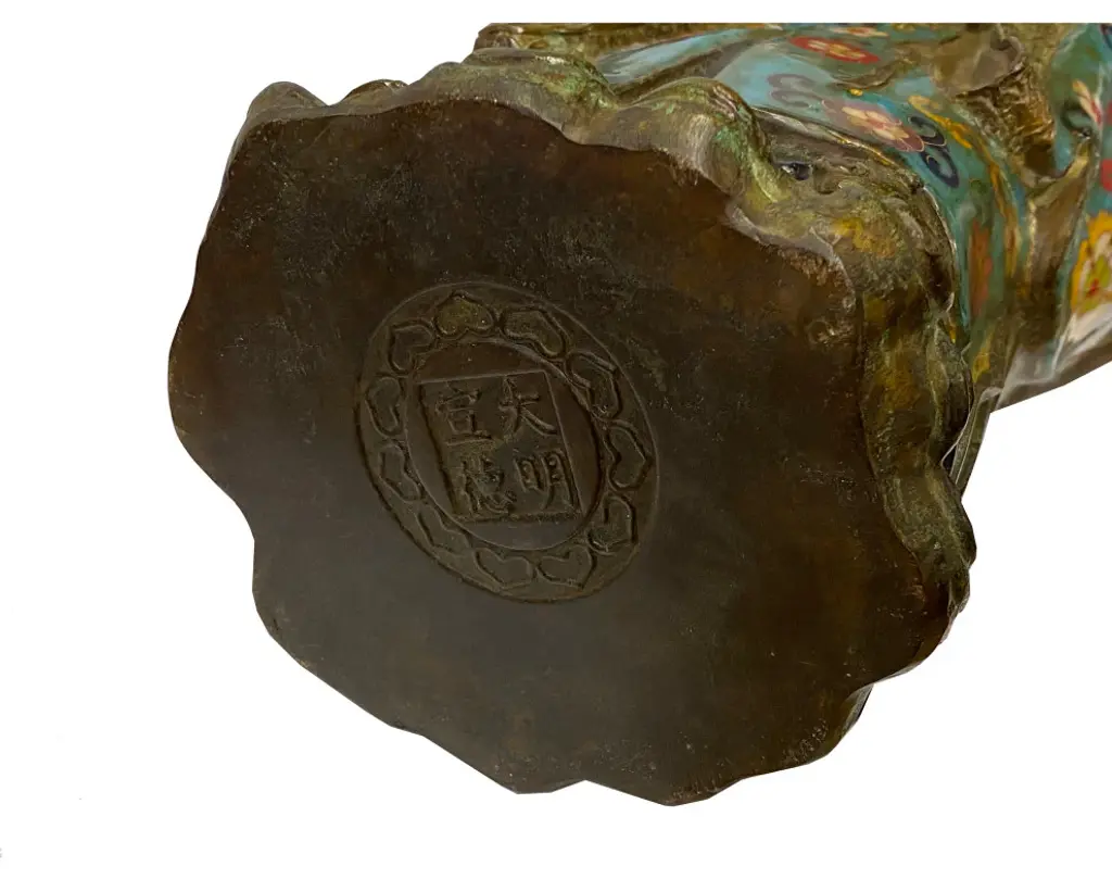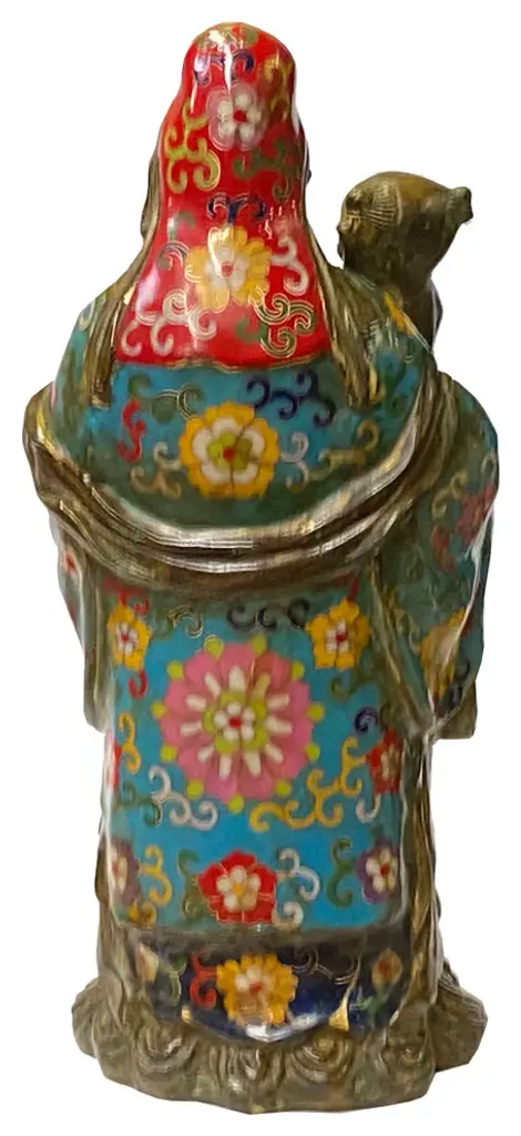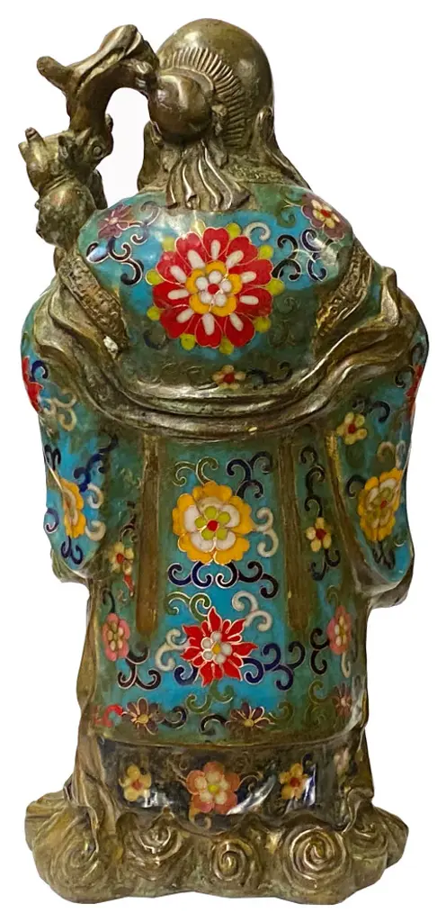 Vintage Metal Blue Yellow Enamel Cloisonnã© Fok Lok Shou Statue Set Hws1893