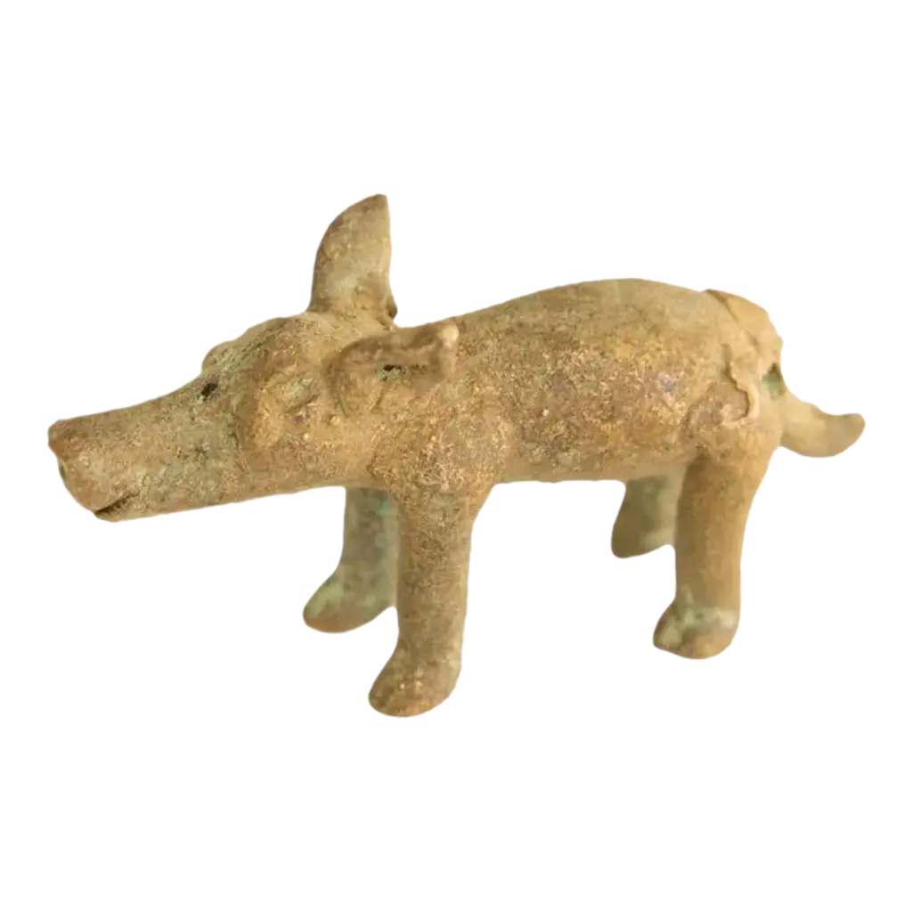 :: Vintage handmade bronze African sculpture of a female ram, known as an Ewe, which typically have no horns. Lovely slight blue-green oxidation. Circa mid 20th century and possibly older, this piece has such incredible handmade charm and no two are identical. As this item is in vintage condition, it may show signs of age and use. Ashanti gold weights are also named Mbramoo and this may be an example of an Ashanti gold weight, used in the measuring of gold and gold dust. Create a scene of wildlife with many of our vintage African animal sculptures or add just one to the shelf, these are beautiful collectibles that you or someone you love will cherish forever. Kindly note the item photographed may not necessarily be an identical to that which you receive. This listing is for a one of a kind handmade item, however, we do have multiples which are being sold under one parent listing. Minor and subtle differences may apply to the finish, dimensions, slight imperfections, and in some cases a male or female being substituted interchangeably.