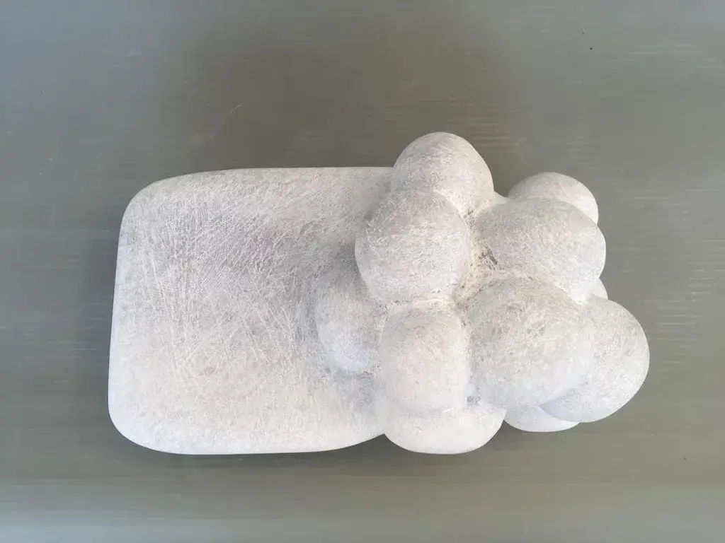 Vision become true, rare naxian marble sculpture by tom von kaenel dimensions: l 26 cm x w 17.5 cm x h 7 cm unique artwork signed by tom von kaenel rare naxian marble all the artworks of tom von kaenel are unique, handcrafted by himself. The stones all come from the surrounding marble quarries of the island. The naxian marble is of white, grey or yellow-brown color, its structure is crystalline. No measuring instruments other than compasses and scales are used in the production of an object. The eye decides on the final shape. The crystalline surfaces are shimmering. This gives the object a unique liveliness. Tom von kaenel, sculptor and painter, was born in switzerland in 1961. Already in his early childhood he was deeply devoted to art. His desire to bring beauty to the world is tom von kaenel’s inspiration, drive and source for the creation of his works. Already during his training as a technical draughtsman and later as a teacher of pictorial design, he devoted himself to painting and three-dimensional work. Tom von kaenel has exhibited his work in various solo and group exhibitions. For seven years he was represented by galerie ute barth in zurich. Today tom von kaenel lives and works on the island of naxos. Everything in his environment inspires and shapes his work. He creates objects and sculptures out of naxian marble in craftsmanship liveliness and timeless beauty. This piece is attributed to the mentioned designer/maker. It has no attribution mark and no official proof of authenticity, however it is well documented in design history. I take full responsibility for any authenticity issues arising from misattribution