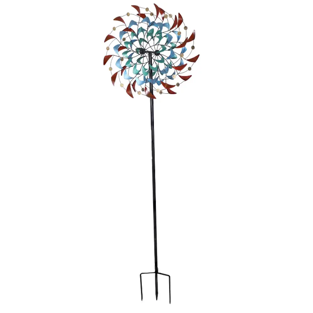 Add movement, shine, and modern style to your landscape with our Copper and Silver Double-Helix Wind Spinner. This eye-catching kinetic sculpture features rows of curved metal blades in alternating copper and silver finishes, artfully arranged in a double-helix design that spins gracefully with the wind. Crafted from durable metal with a weather-resistant finish, it includes a sturdy 4-prong ground stake for secure placement in your garden, yard, or along walkways. Watch as it catches every breeze and creates a mesmerizing display of motion and light.