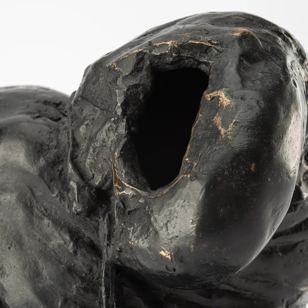 Forged through lost-wax cast bronze with a black patina, this artwork explores the struggle for selfhood. Protrusions symbolize profound, visceral emotions—the soul's pains or internal void. They embody the authentic self yearning for expression. Wanderart metal-cast artworks are all hand made, therefore dimensions and weight may vary.