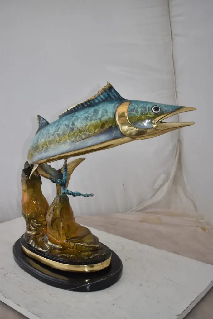 Wahoo Fish Swimming In The Ocean Bronze Statue Size: 17" X 25" X 20"h