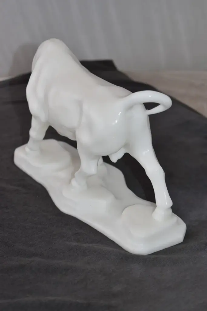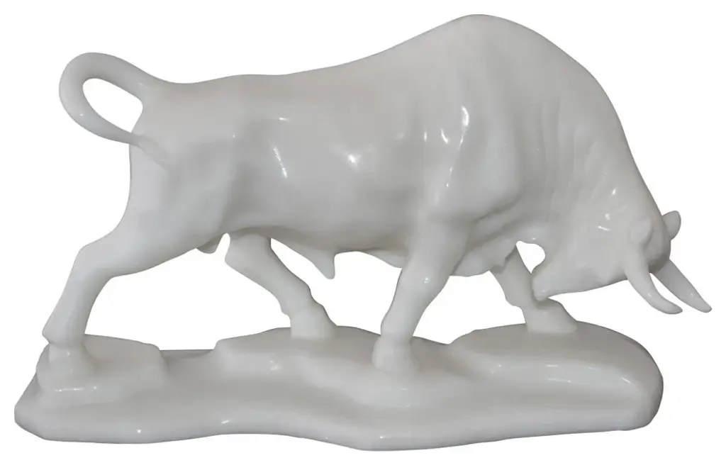 Wall Street Bull Made Of White Marble Size: 11" X 5" X 7"h