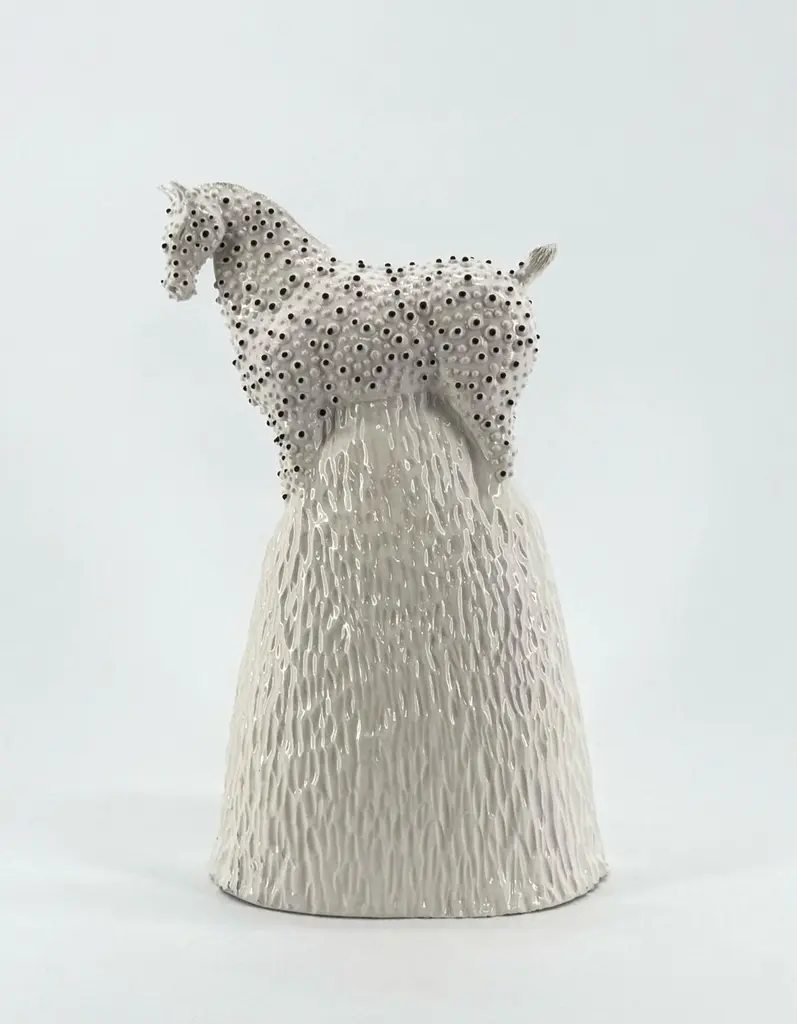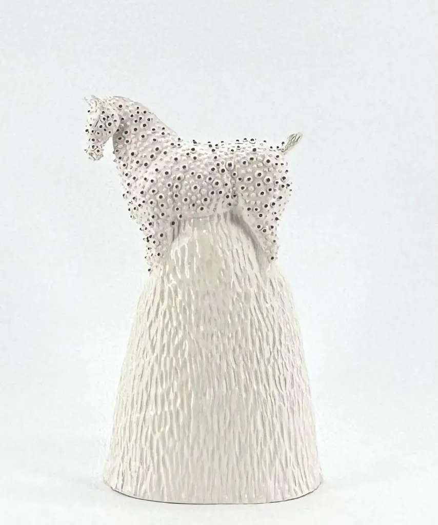 White And Pois Horse, Ceramic Centerpiece, Handmade Without Mold, New 2024