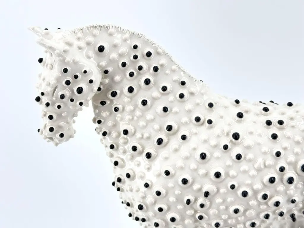 The piece is a unique representation of an Horse in a modern way. The animal is gently handcrafted starting from clay and all hand worked. All the pieces from Mosche Bianche are unique since they are done without any mold. Have yourself a unique piece nobody else has.Our designer creates these pieces completely by hand, without any mold. Any piece is different and created by the sapient hands of the artisans.They live in Umbria, a wonderful region in Italy. Umbria is called "green lumb" of italy with its forest and hills well known all over the world. The naturalistic artistry inspirations is taken from the landscapes surrounding their labs and workplaces. The animals are all different and created for unique people.