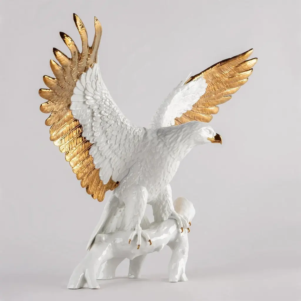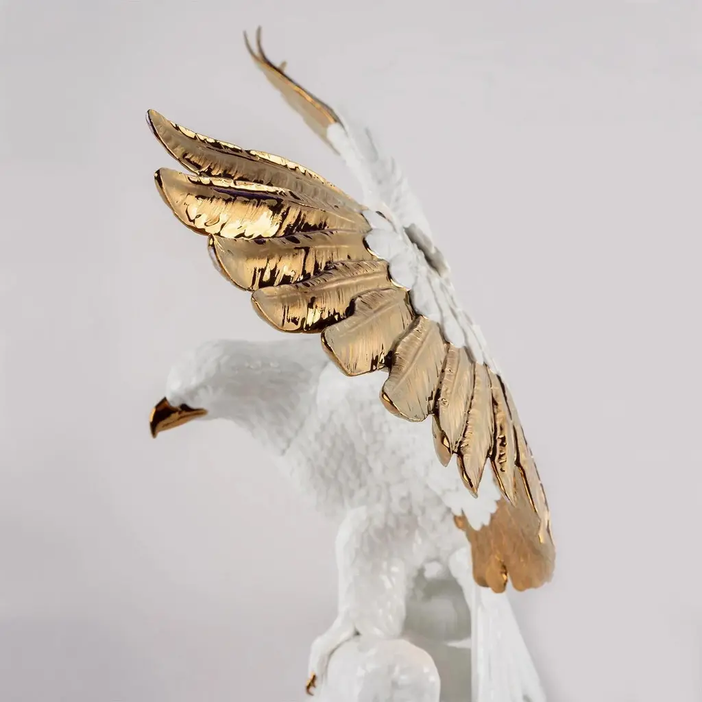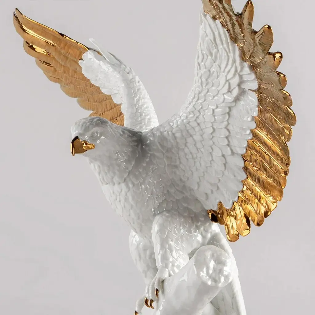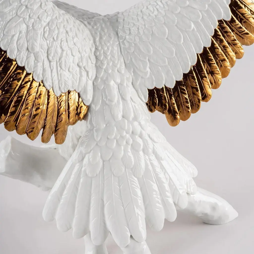 Sculpture White Eagle with all structure in porcelain in shiny finish and in glazed copper lustrous finish.