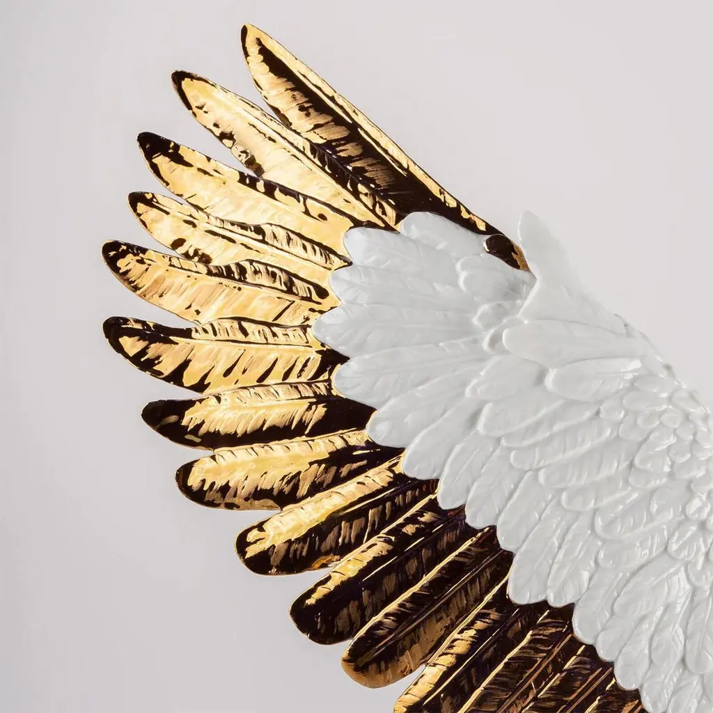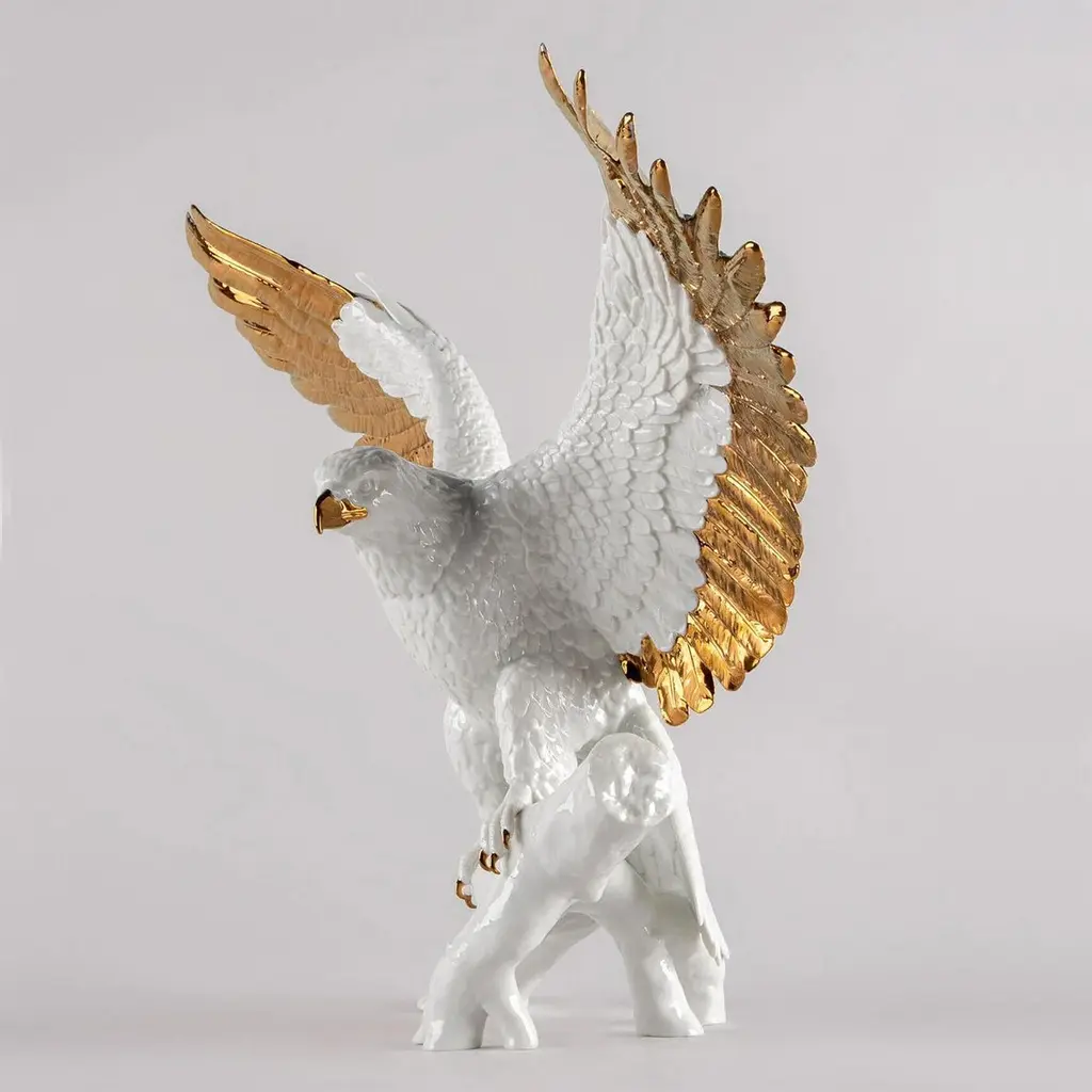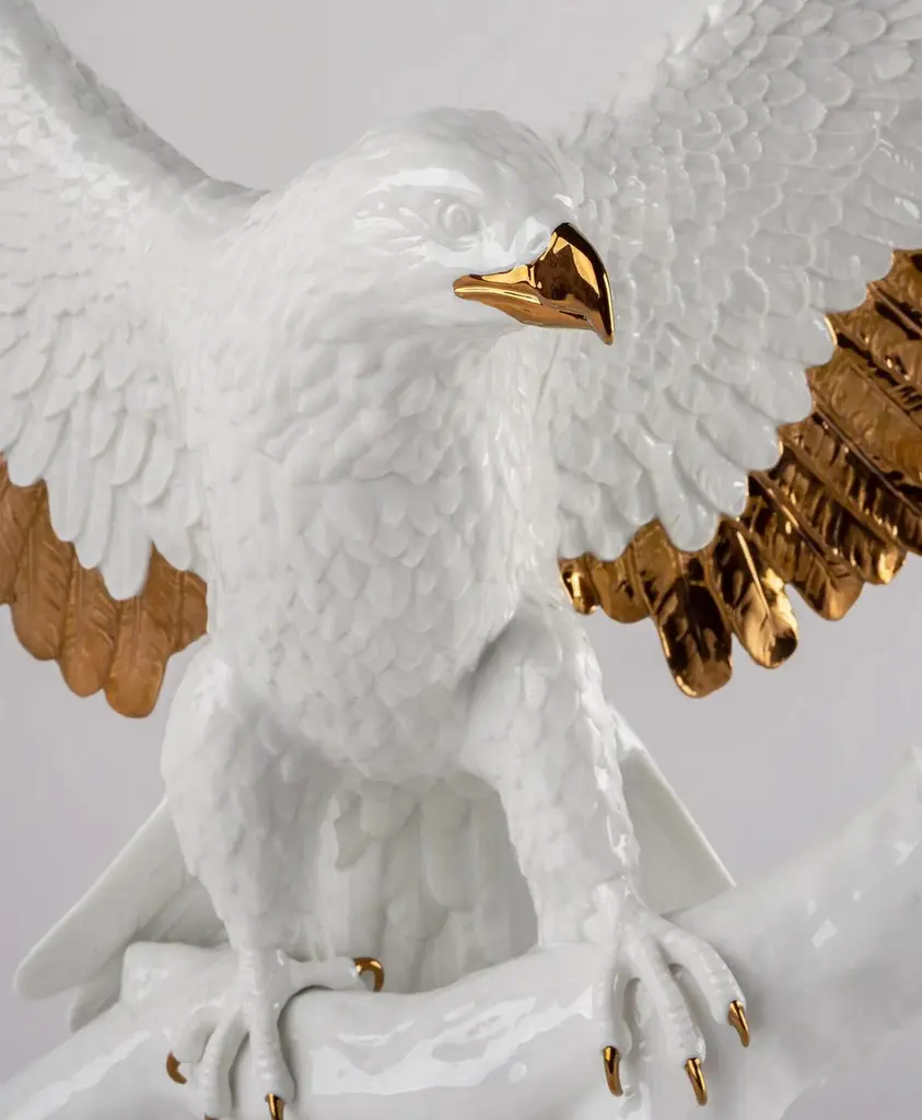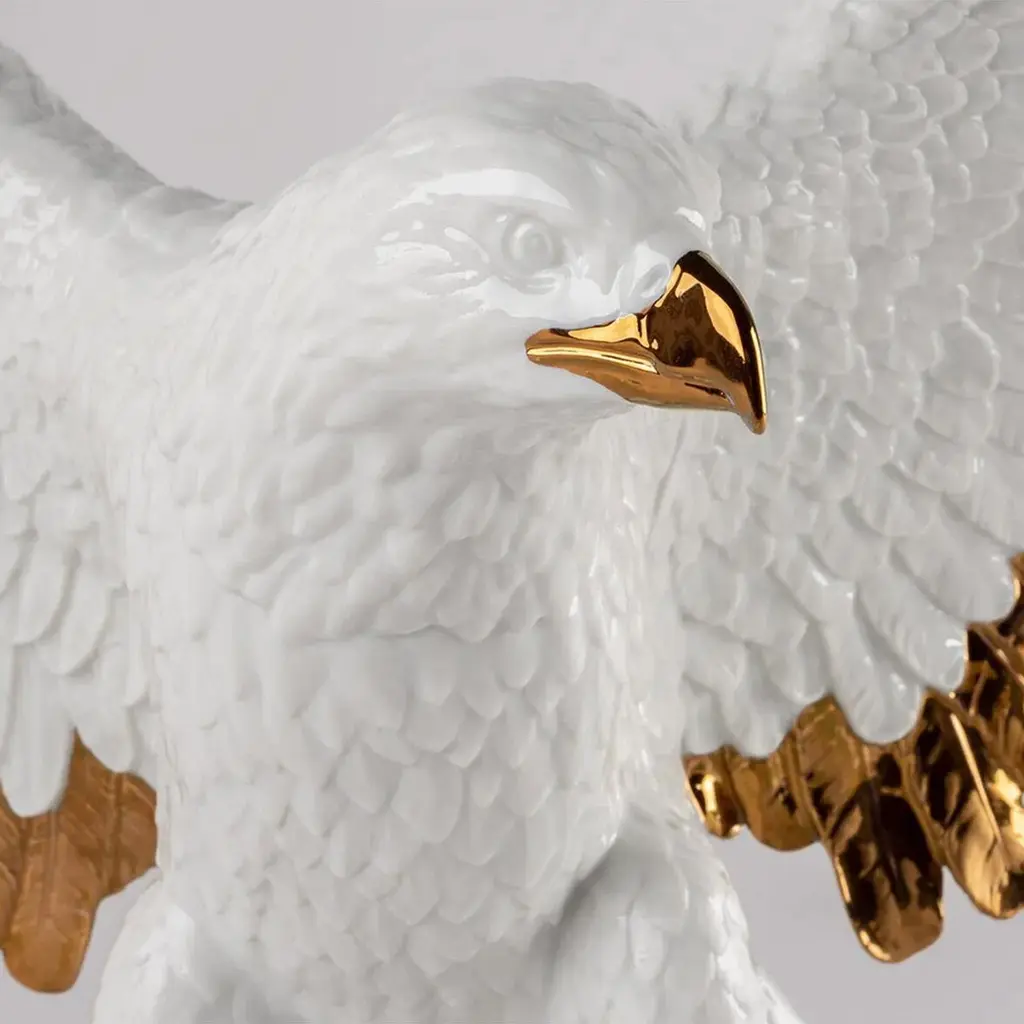 Sculpture White Eagle with all structure in porcelain in shiny finish and in glazed copper lustrous finish.