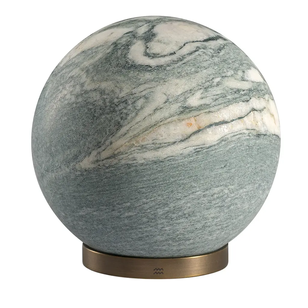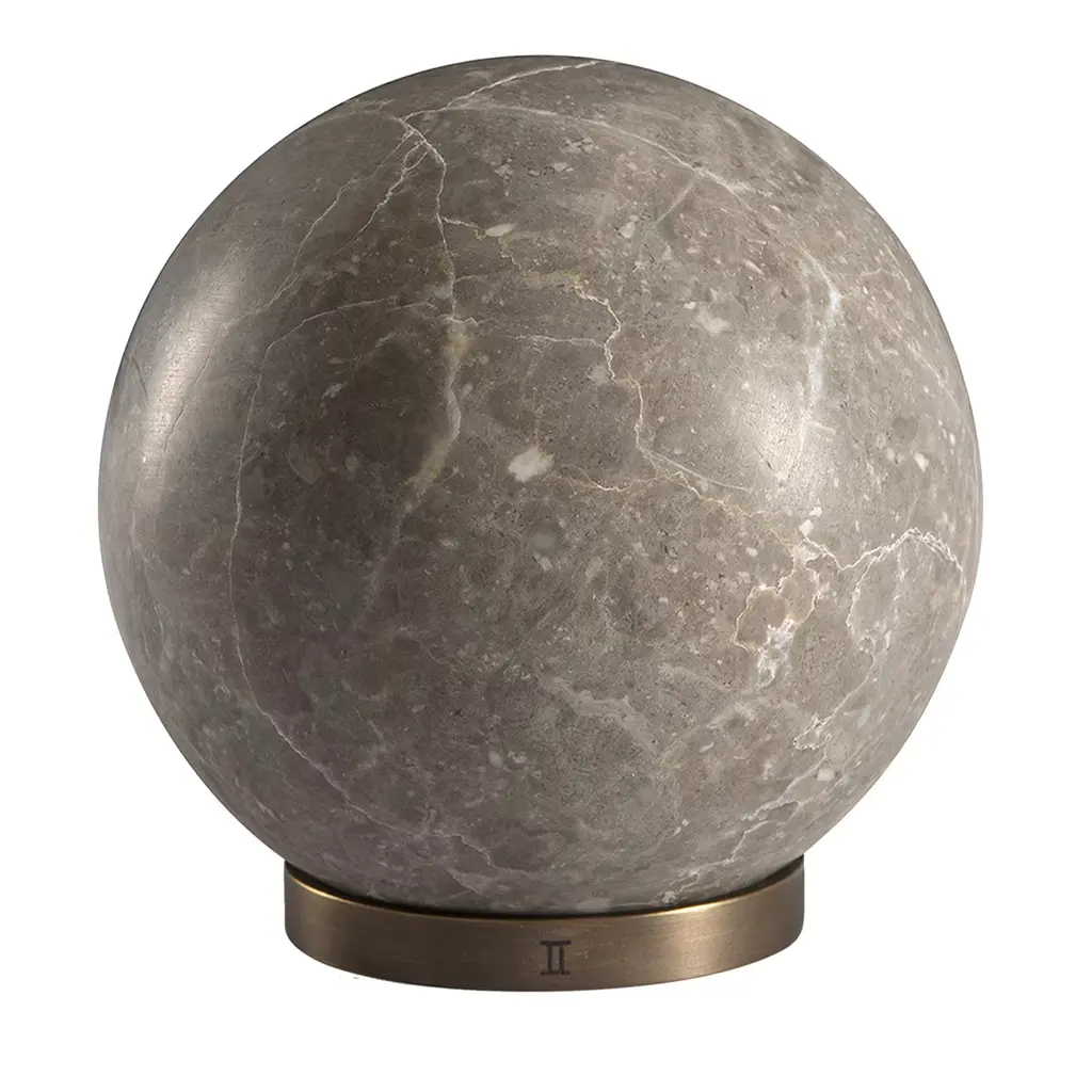 Minimalist and chic, this striking decorative object is handcrafted of white Carrara marble and is supported by a removable base of burnished brass. The perfect standout piece to accent a console, a coffee table or a shelf, this object from the Gravity collection can also be used as a paperweight on a contemporary desk. It can be displayed with other desk accessories from the Balancing and Lui & Lei collections to complement a contemporary office decor. Available also in black Marquina marble.