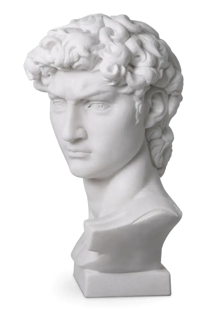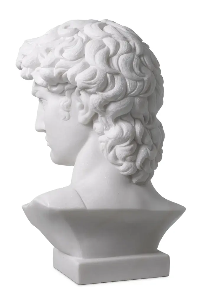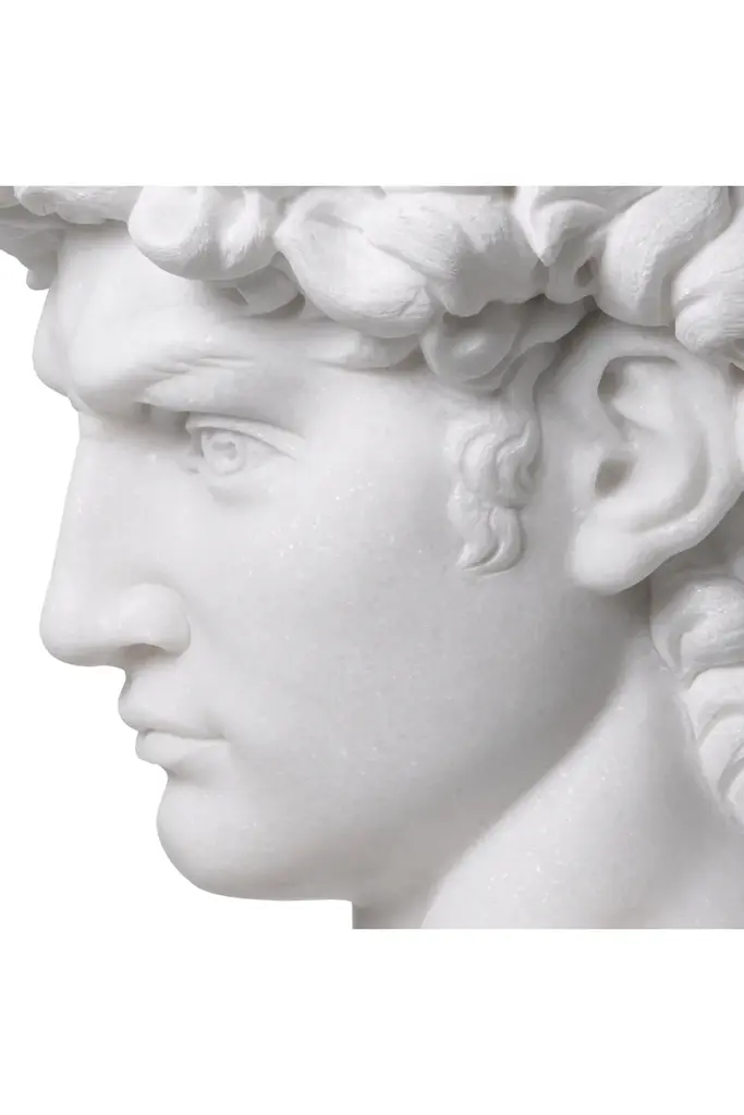 A classical Greek art that will elevate any interior decor to new heights of grandeur, the David Head Sculpture by Eichholtz has mesmerizing contours and details that seem to radiate a passion for craftsmanship. It has been sculpted from white marble evoking a god-like refinement to any contemporary home.