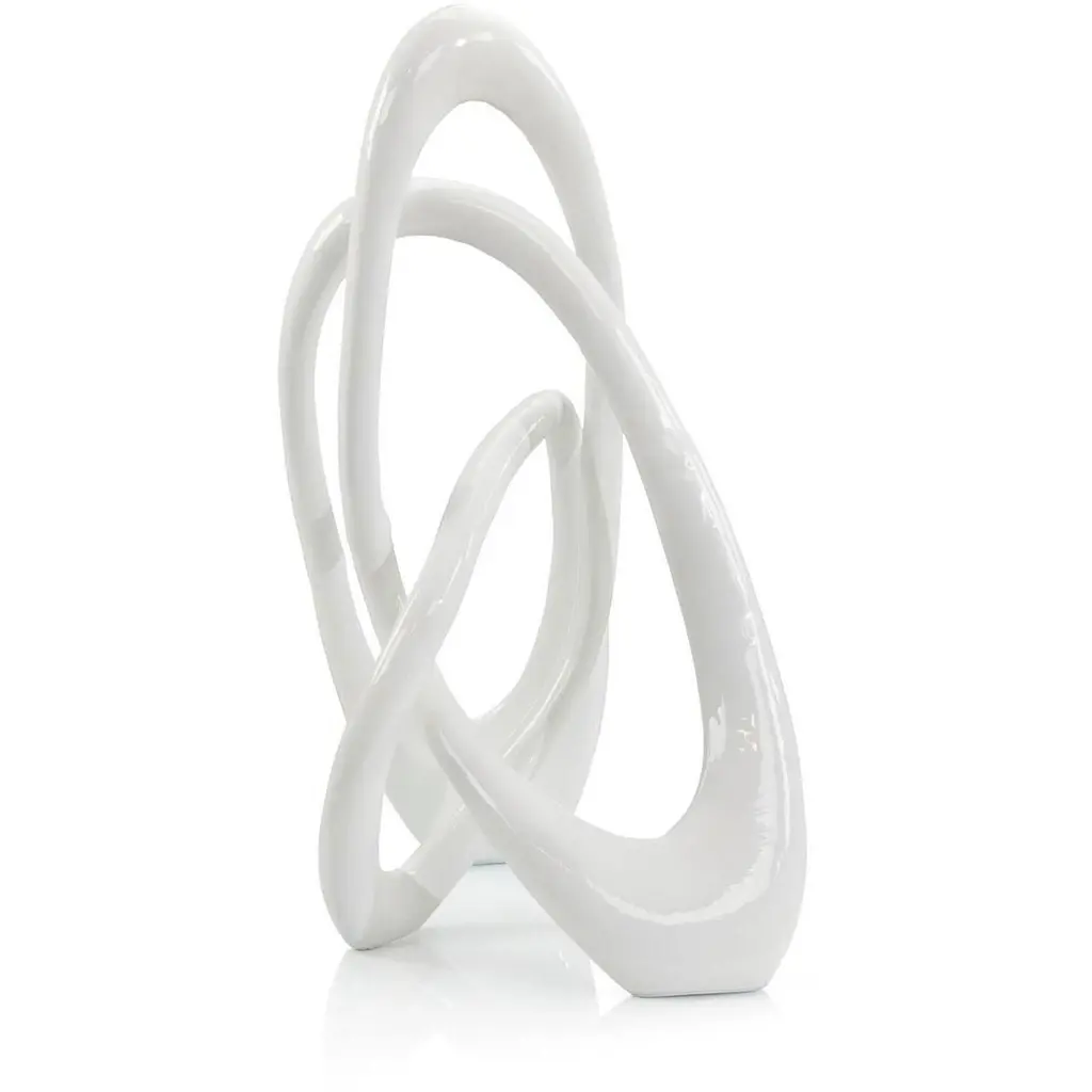 Made of pure white marble, our exclusive knot sculpture makes an intriguing statement on a sideboard or bookshelf. Skilled artisans hand carve each mesmerizing composition of two joined links in a marvel of workmanship. The donut-shaped rings are overscaled with polished smooth curves to bring out the veining and color nuance unique to each stone.