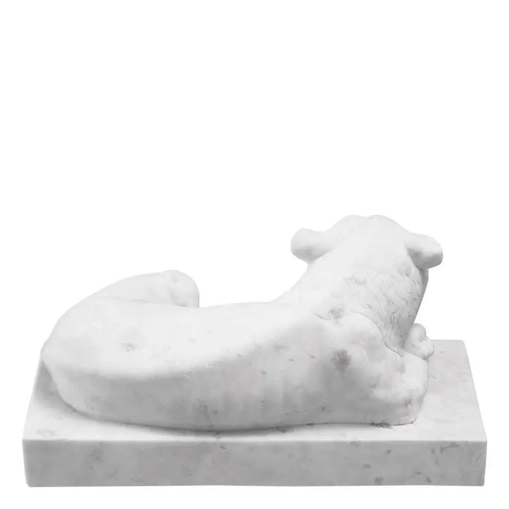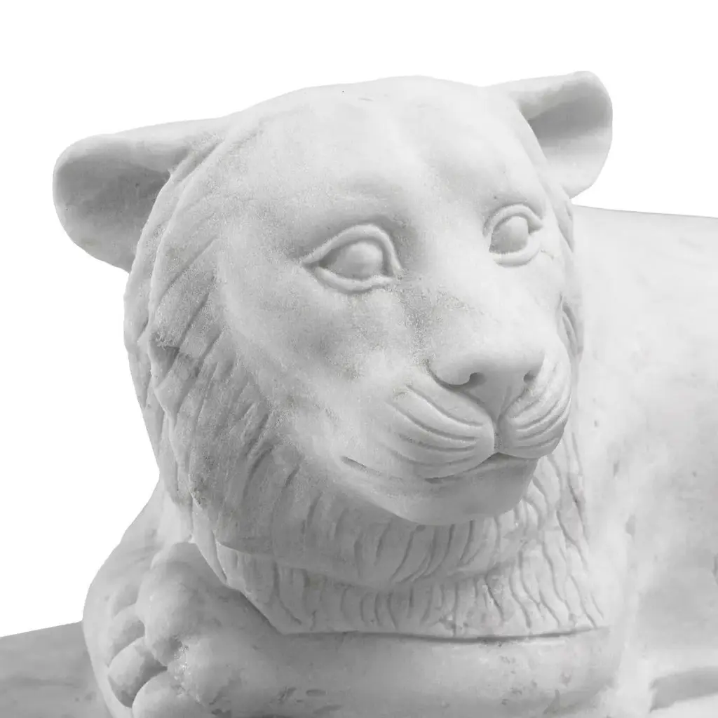 White marble sculpture of a reclining lion in the taste of ancient Egypt, 20th century.A white marble sculpture of a reclining lion in the taste of ancient Egypt, 20th century.H: 22cm, W: 42.5cm, D: 21cmProduction time: 2-3 weeks