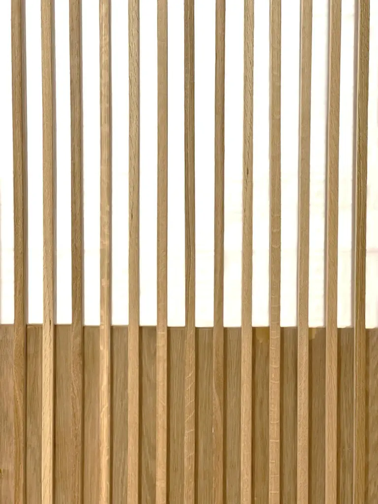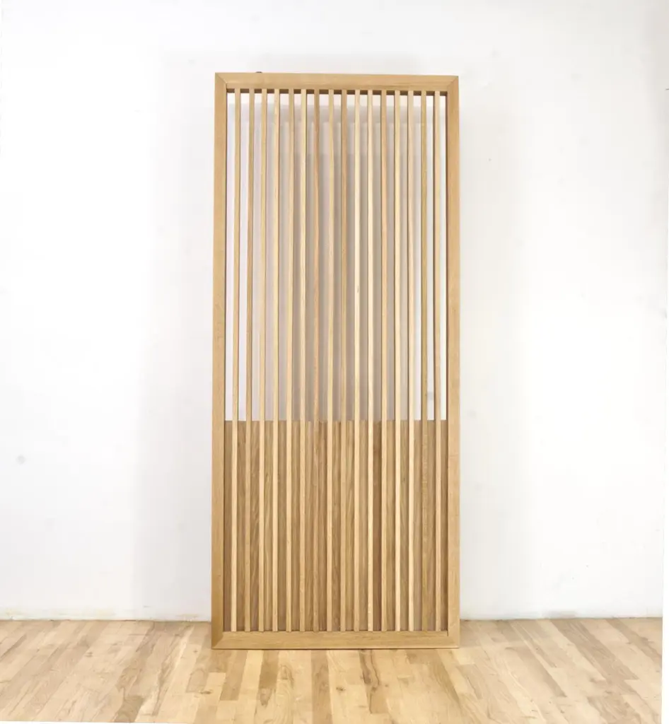 A portal and a sieve. This screen door can be that magical entry condition to an intimate space. It can be that pause before opening into a grandiose space. The design gives a peek into the other side while maintaining an etiquette of discretion. Pivot hinges allow for easy installation and functionality. A modern sculpture handcrafted for performance and longevity. Available in white oak, walnut, and bleached walnut. Custom sizing can be accommodated per field conditions.We currently offer this design in a standard 36" x 80" with hardware for easy installation. This product does not include the wall in the video. Own a Figure Ground Original!.