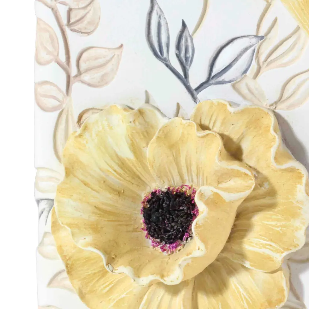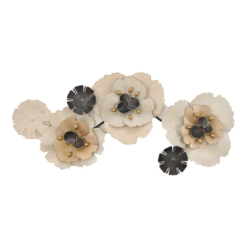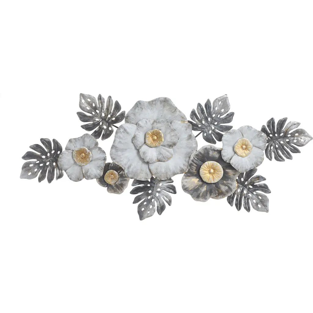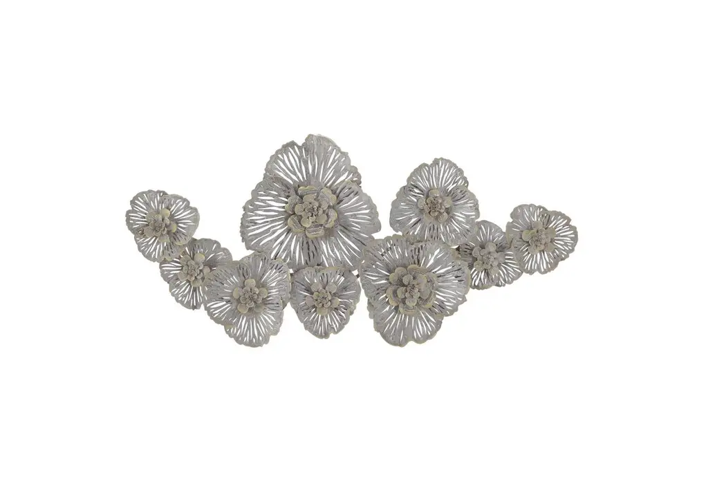 Add a rustic touch to your plant nursery, sunroom or covered patio. Layered look adds depth to your walls.- Includes three wall flowers, one of each shown. Largest measures 23"d.- Hand finished metal with whitewash finish- Attaches securely to the wall.- Heirloom Quality - Expertly hand crafted and hand finished. Due to the hand crafted nature of this piece, each piece may have subtle differences.