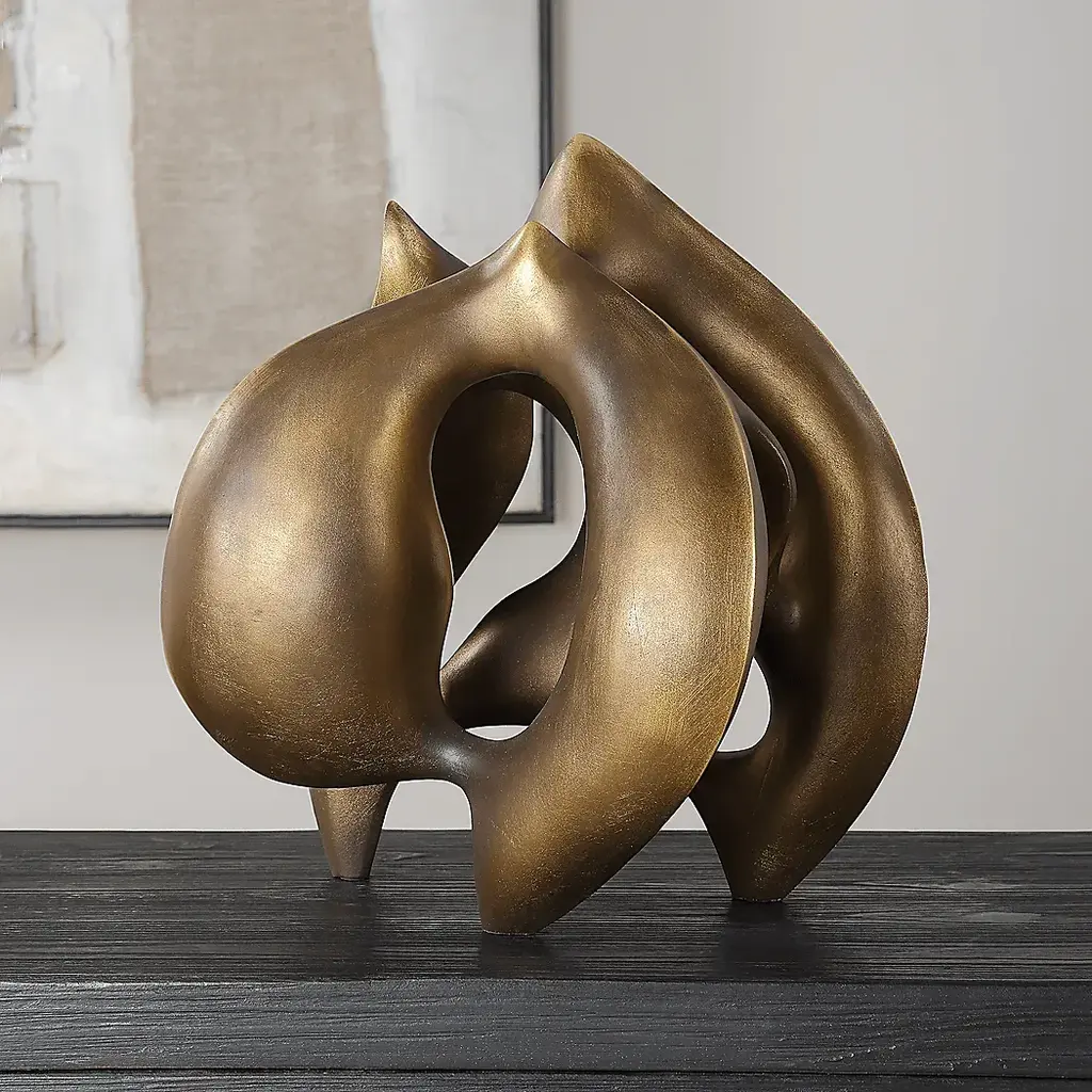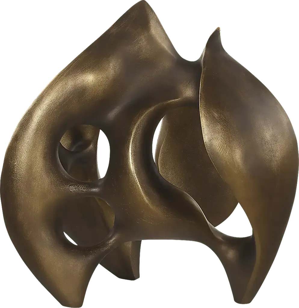 Wilim is a visually captivating abstract bronze finished sculpture featuring smooth curves and multiple openings. Its flowing, organic form and polished finish give it a dynamic and modern aesthetic, making it an ideal centerpiece for contemporary spaces.