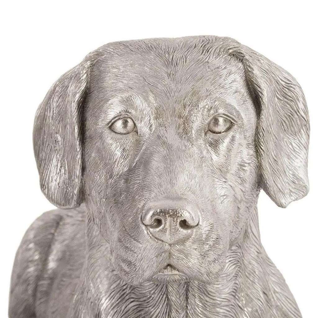 Winona Modern Classic Silver Leaf Laying Labrador Life Size Statue