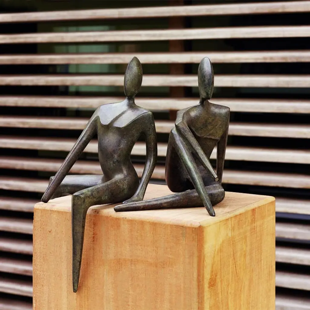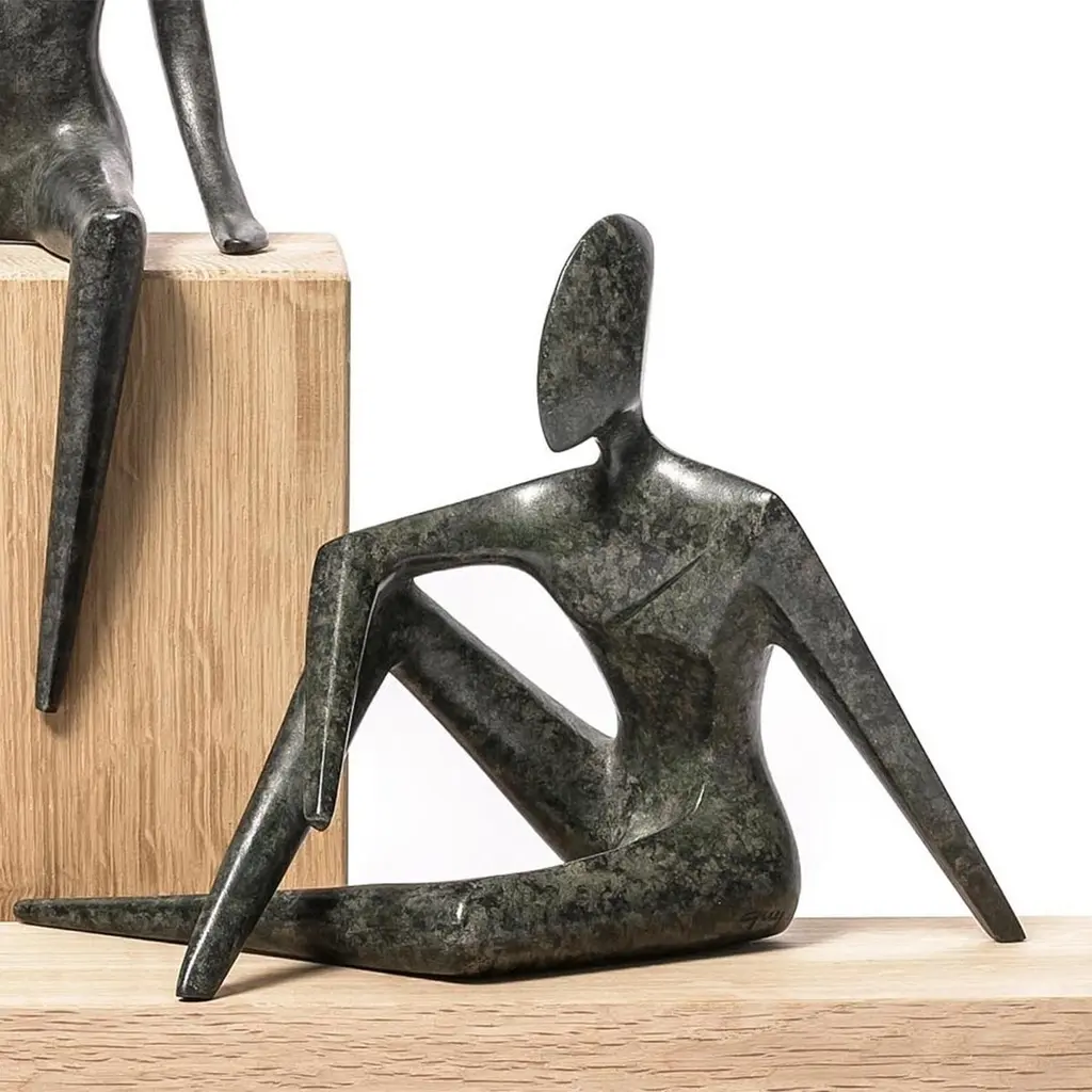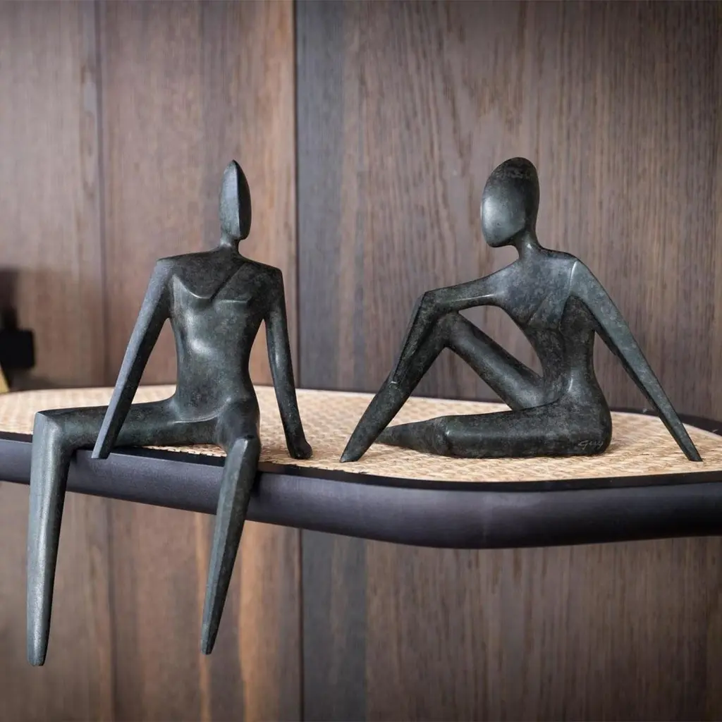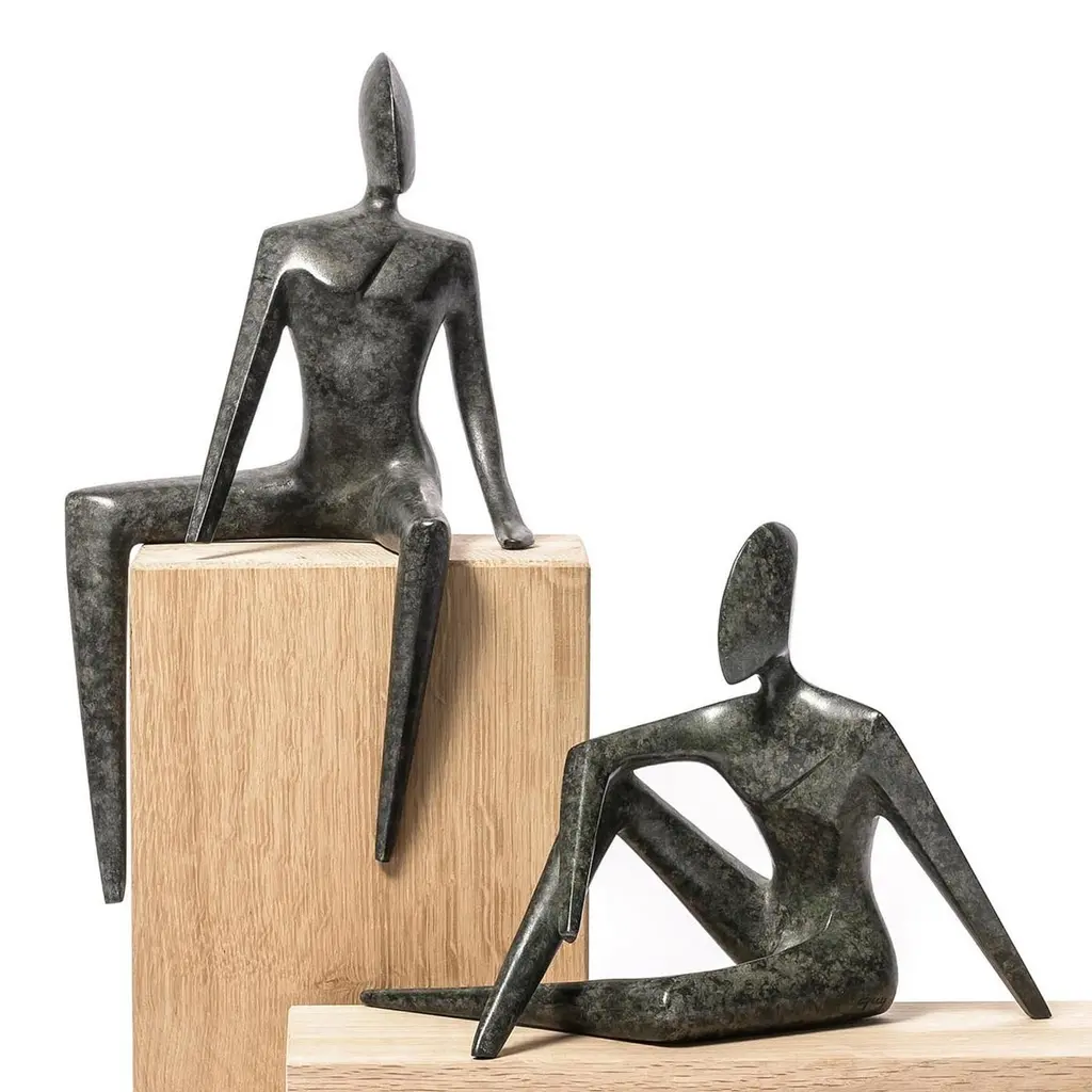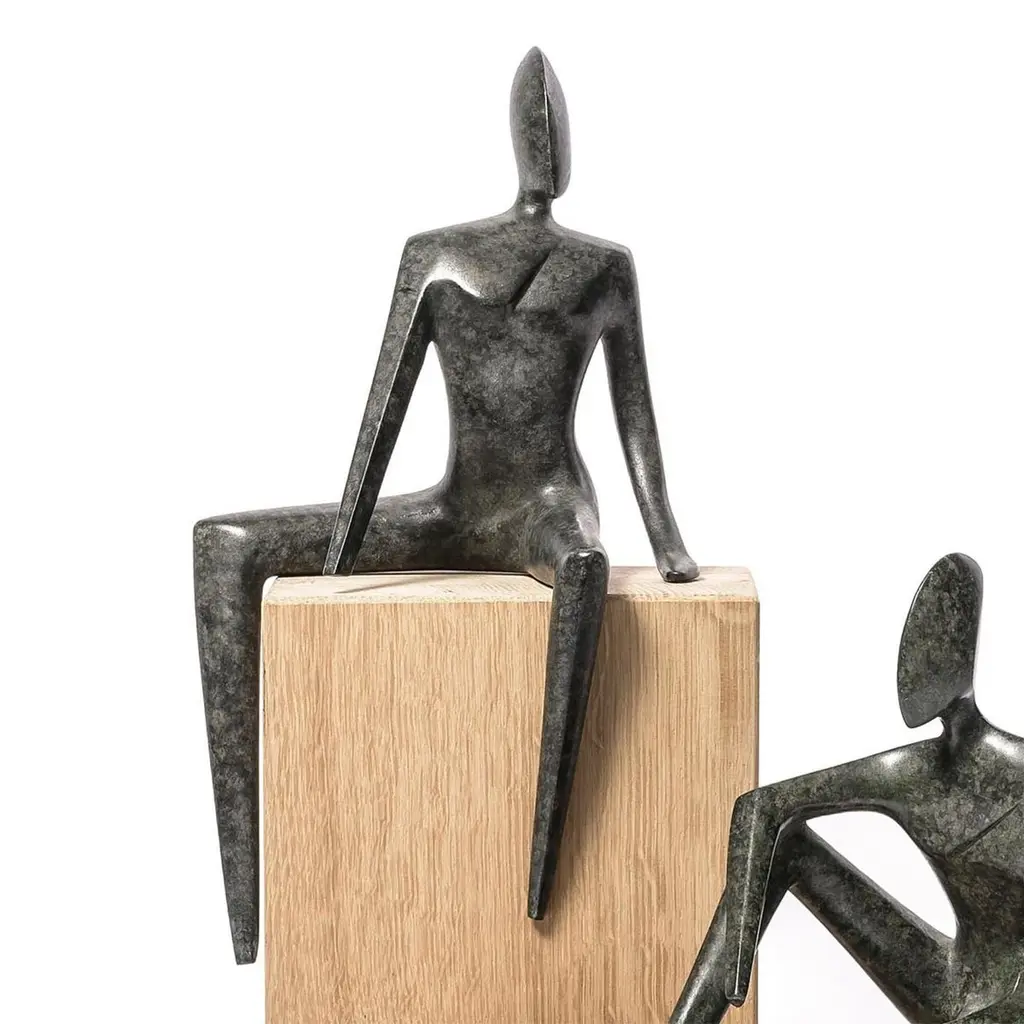 Sculpture Woman and Man Set of 2 all in solid bronze in dark green bronze finish.Woman: L15xD13xH28cm.Man: L21xD12xH15cm.Oak wood bases not included.