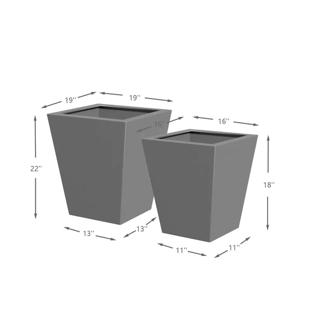 Wooakway 2-piece Indoor Outdoor Geometric Metal Planter Pot Planter Box Patio Garden Bed Gray