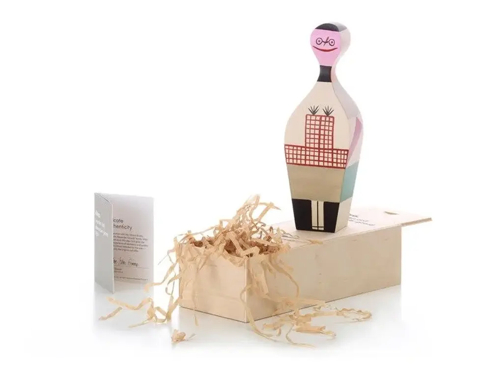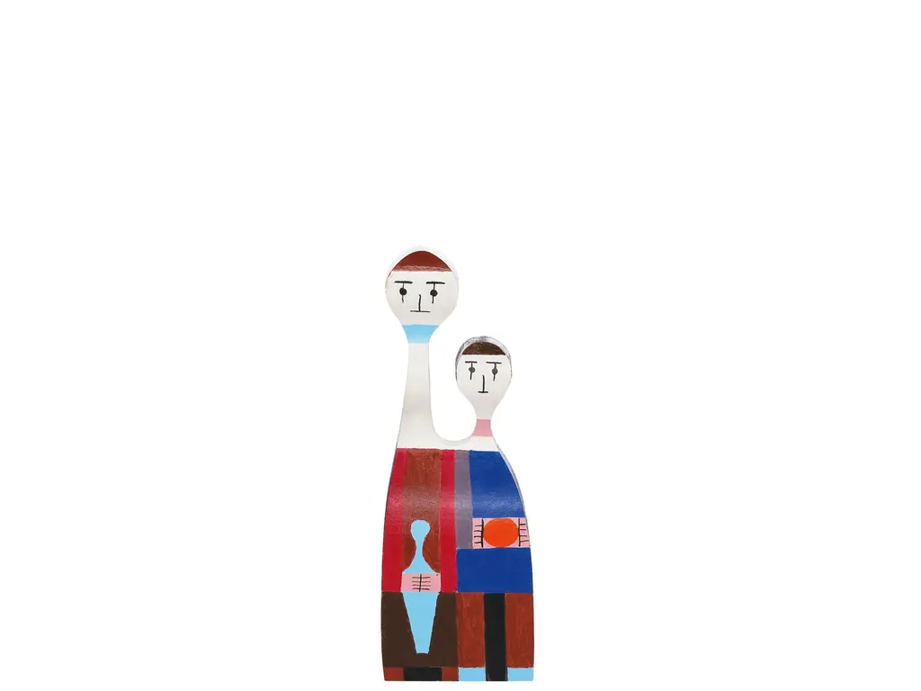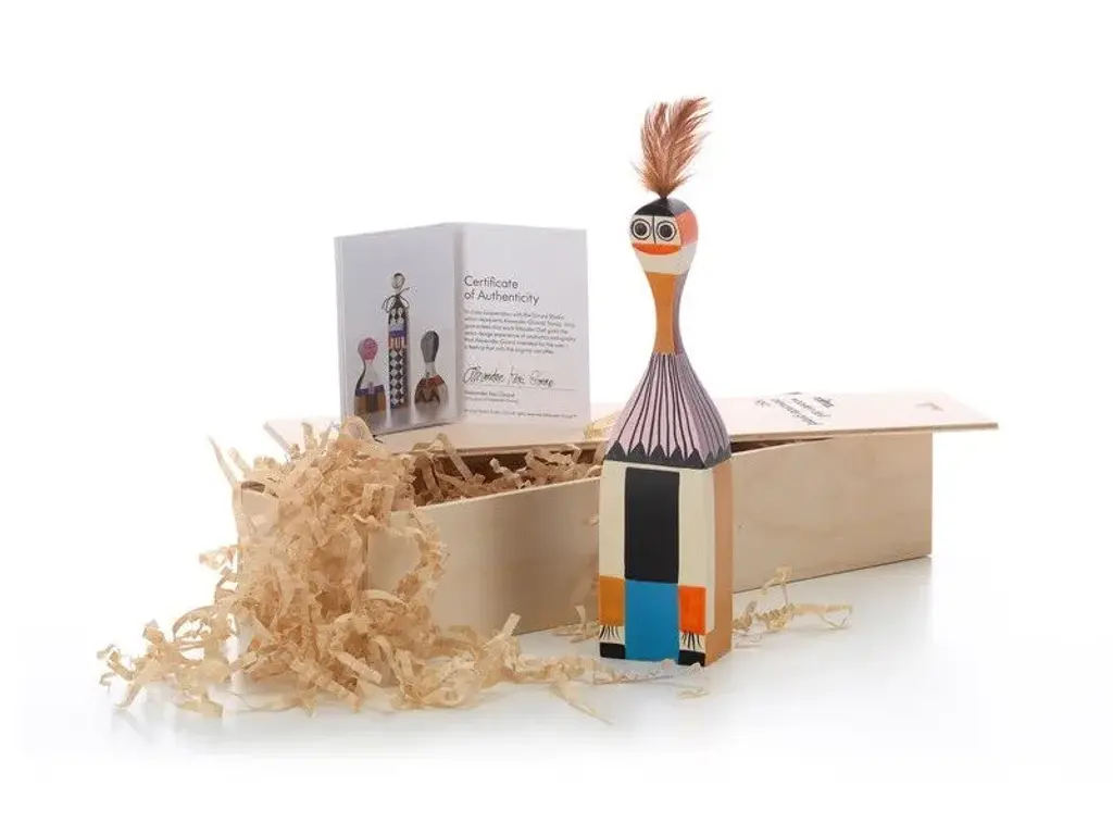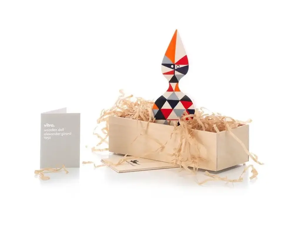 - Material: solid fir, hand painted.- Packaging: high-quality wooden gift box with printed label, brochure included.Together with Charles and Ray Eames and George Nelson, Alexander Girard was one of the leading figures of postwar American design. A key source of inspiration for his wide-ranging oeuvre, which focused primarily on textile design, was his passion for the folk art of South America, Asia and Eastern Europe.The decorative Wooden Dolls, designed and made by Girard for his own home in Santa Fe, were likewise inspired by his extensive personal collection of folk art. Part decorative object, part toy, the Wooden Dolls are based on originals from the Girard estate in the holdings of the Vitra Design Museum.