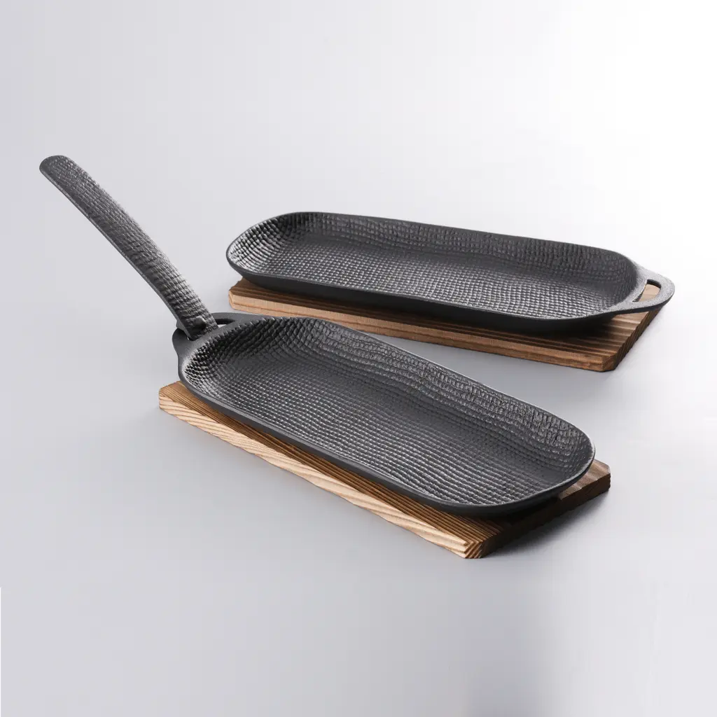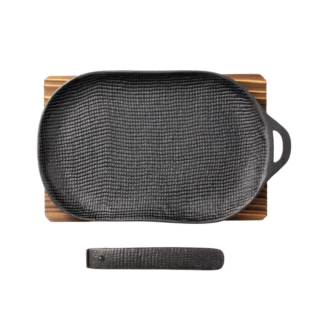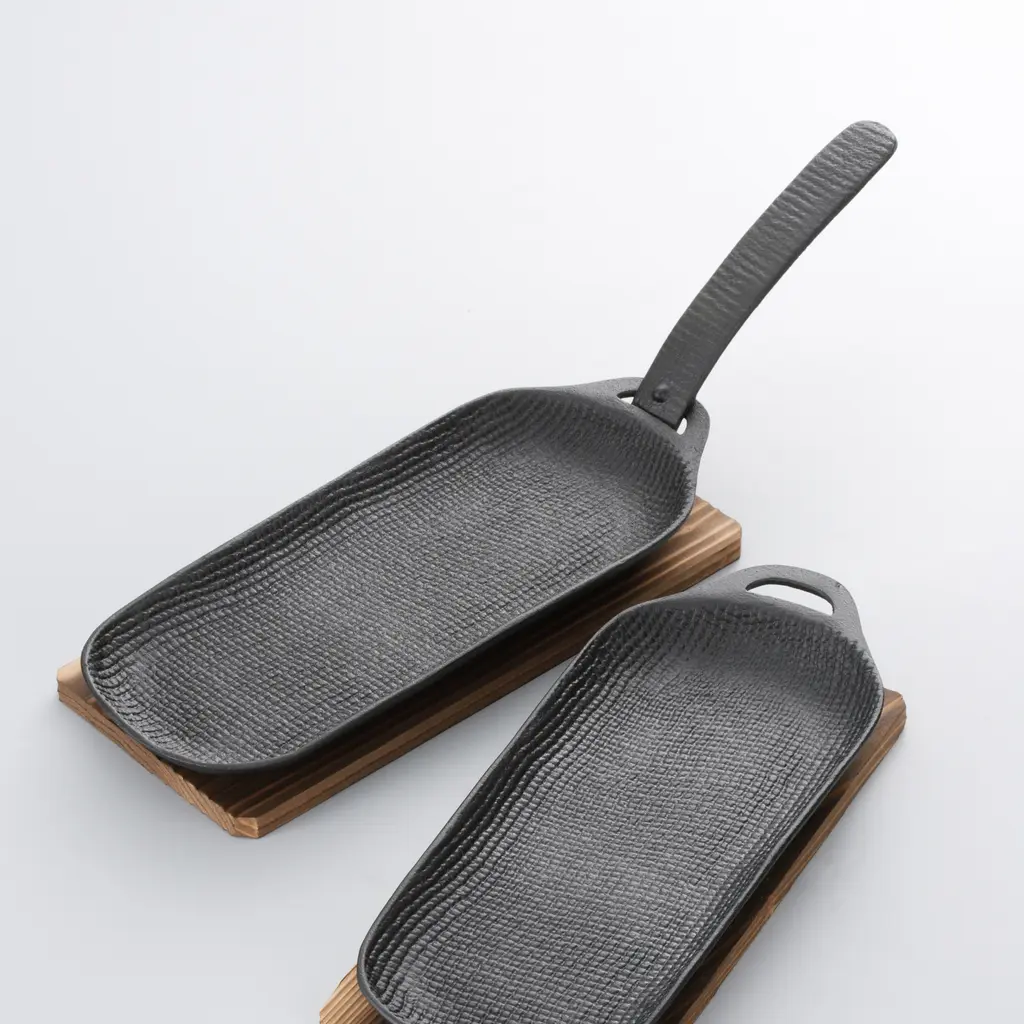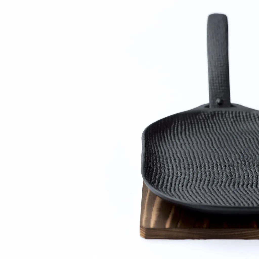 Elevate your grilling experience with this exceptional Cast Iron Grill Pan, a culinary masterpiece designed to deliver mouthwatering results. Crafted with meticulous attention to detail, this grill pan boasts a range of innovative features that will revolutionize your cooking adventures. One of the standout features of YakiYaki grill pan is its distinctive undulating pattern on the cooking surface. This pattern serves a dual purpose—it enhances the aesthetic appeal of the pan while also providing functional benefits. The undulating design effectively traps and distributes heat, ensuring that your food cooks evenly and retains its natural flavors. Whether you’re searing steaks, grilling vegetables, or preparing delicate seafood, this grill pan is perfectly suited to meet your culinary needs. While the grill pan is primarily designed for grilling, its versatility extends to the stovetop as well. Thanks to its robust construction and heat-retention properties, you can use it directly on various stovetop surfaces for other cooking techniques. From sautéing and stir-frying to simmering and braising, this grill pan empowers you to explore a wide range of culinary possibilities. The detachable handle allows for easy handling and storage, giving you the flexibility to use the pan with or without the handle. The handle’s sturdy construction ensures a secure grip while grilling, while its detachable nature simplifies cleaning and maintenance. For added convenience, the Cast Iron Grill Pan comes with a cedar trivet. This beautifully crafted wooden trivet serves a dual purpose—it protects your table or countertop from heat damage and adds an elegant touch to your dining presentation. Unleash your culinary creativity with the Cast Iron Grill Pan—a versatile and stylish addition to your kitchen arsenal.