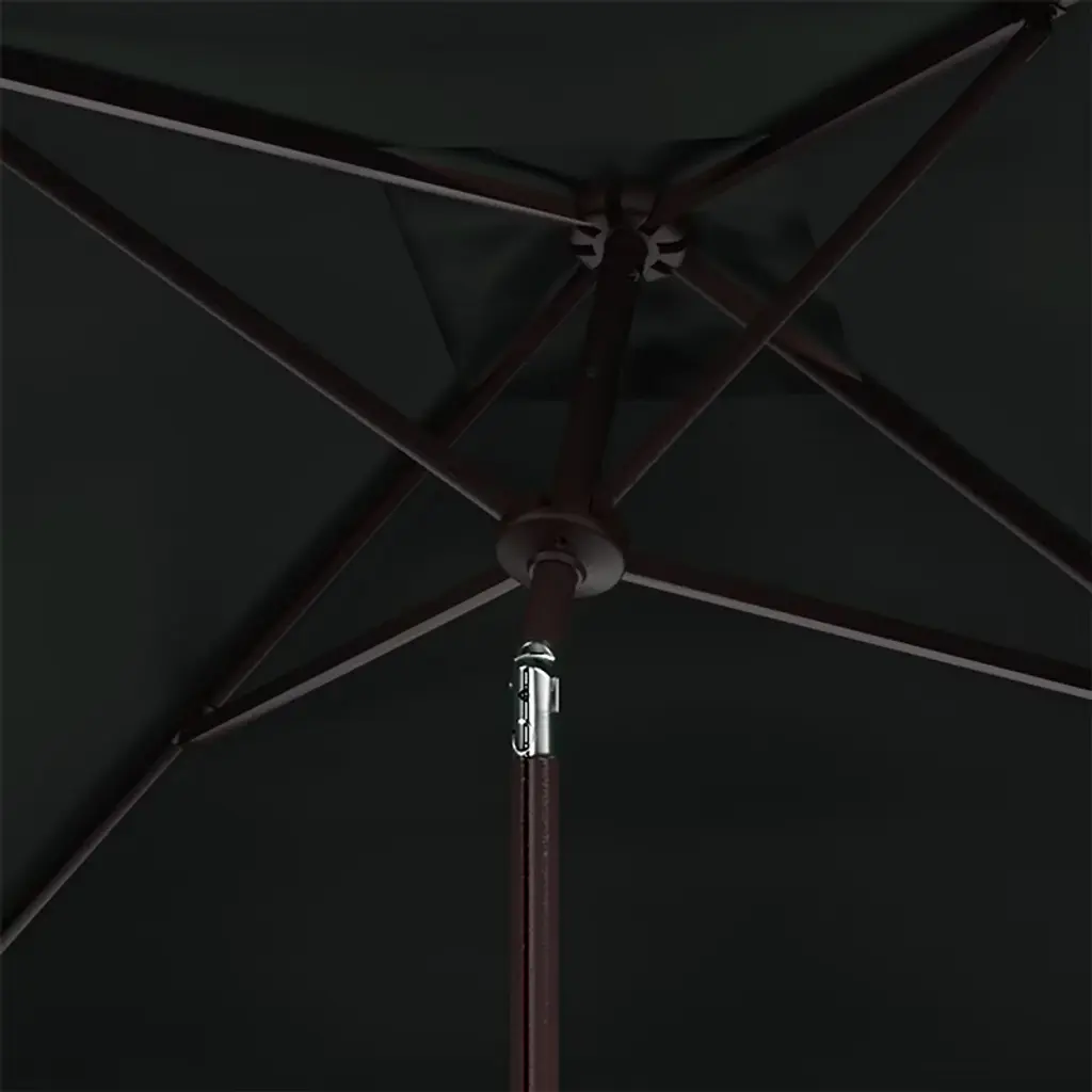 Introducing the ZIMMERMAN 7.5 FT Square Market Umbrella, a perfect addition to your outdoor space. Designed in sleek Dark Green with elegant White trim, this umbrella adds a touch of style while providing excellent shade. Its robust Aluminium frame ensures stability and support. The high-quality Fabric canopy is crafted with care, offering a comfortable retreat under the sun. Measuring 7.5 feet, this umbrella is sized to provide ample coverage for your patio or garden hangouts. Whether you are enjoying a leisurely brunch or a relaxed evening, this umbrella creates an inviting atmosphere. Simple to operate with its user-friendly crank system, you can easily adjust it to your preferred height and angle. Gather your friends and family under the charm and comfort of the ZIMMERMAN Market Umbrella, where shade meets style. Enhance your outdoor living with practicality and elegance. Transform your space into a haven where comfort and design come together effortlessly.