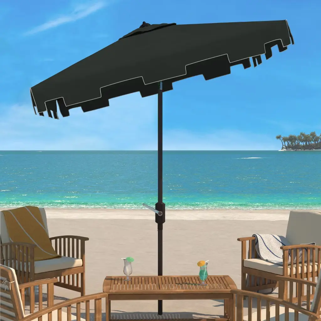 Zimmerman 7.5 Ft Square Market Umbrella W/ White Trim - Pat8400 - Dark Green - Safavieh