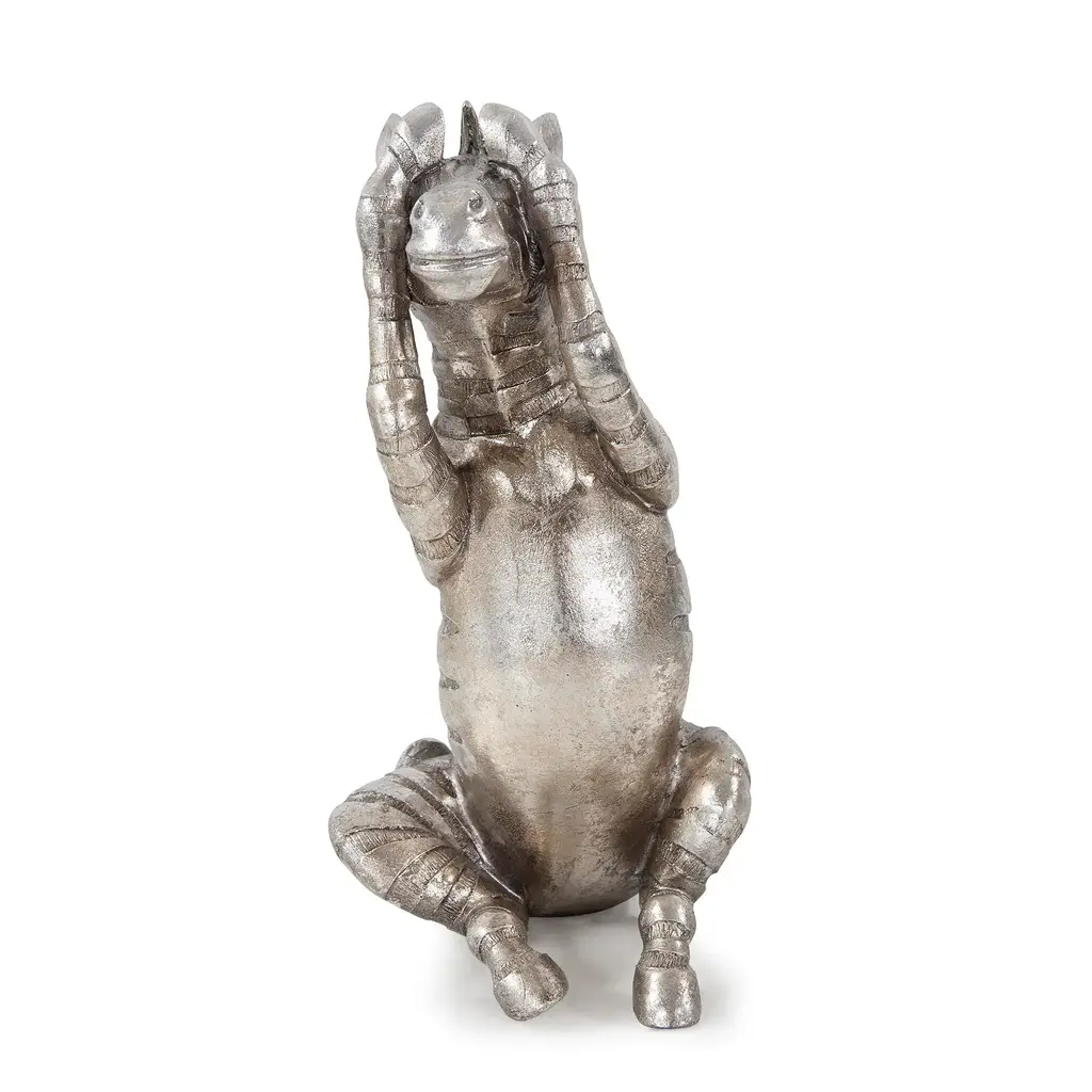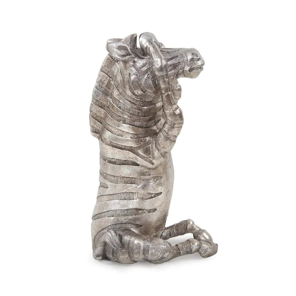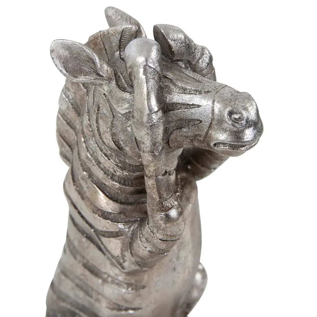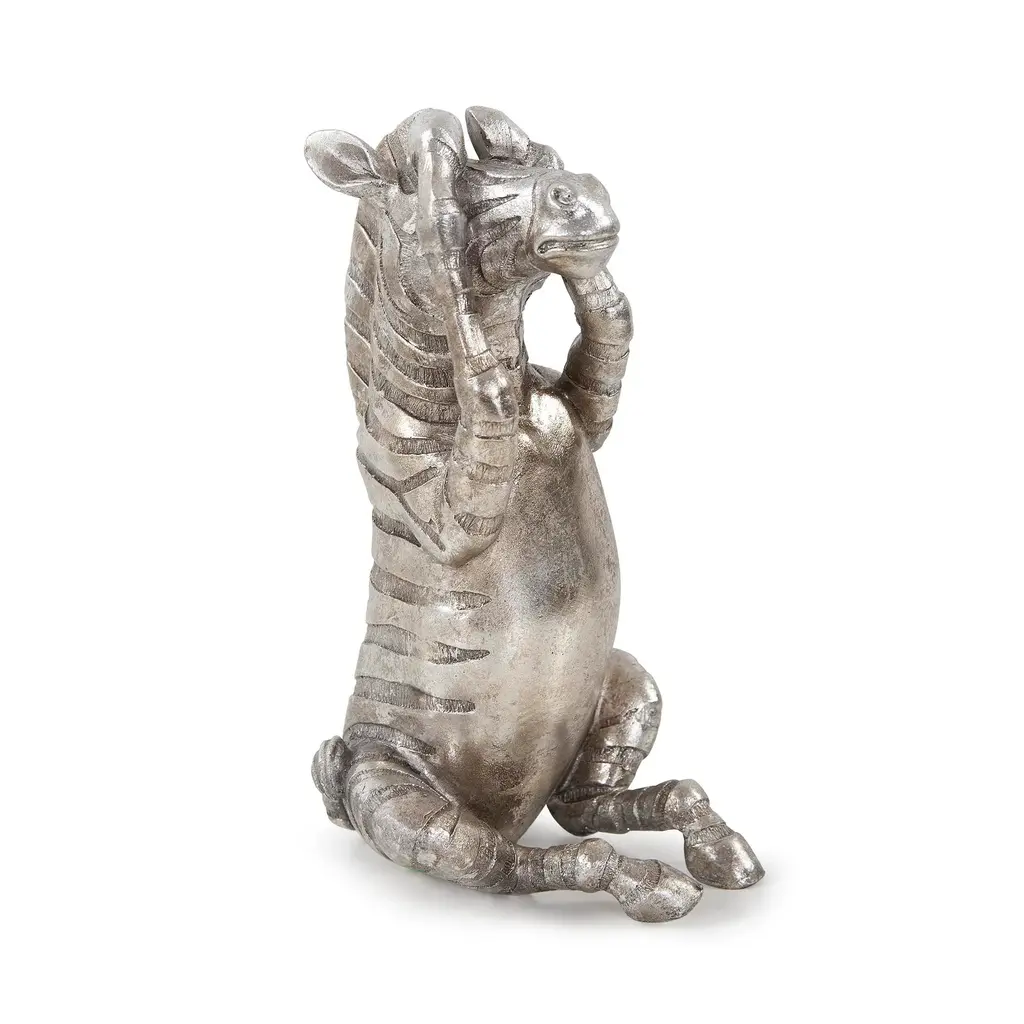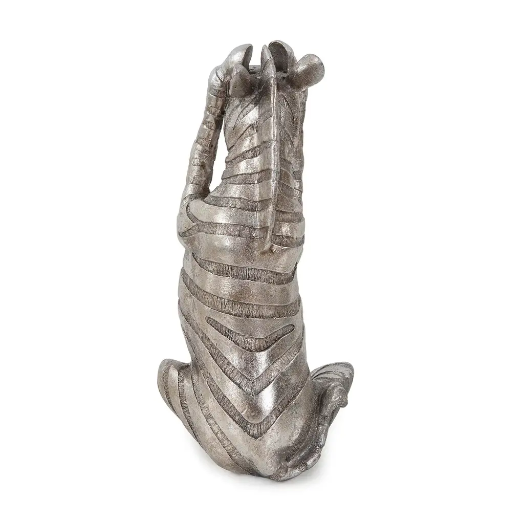 The whimsical Zuri the Zebra comes to life in the classic See No Evil, Speak No Evil, Hear No Evil. Zuri is featured in a antique silver finish with incredible textured stripping. These comical small cast resin sculptures will bring a smile to everyone's face.