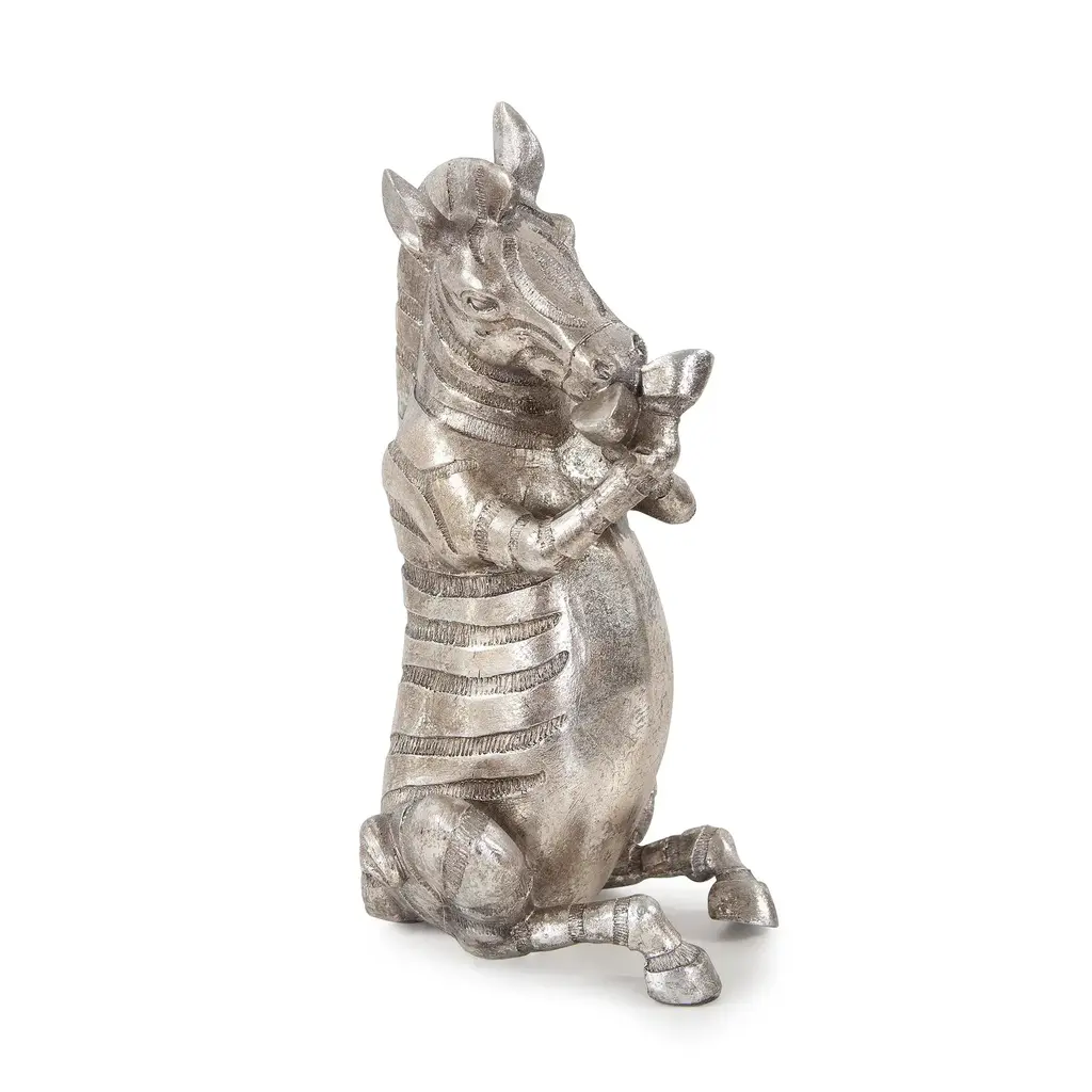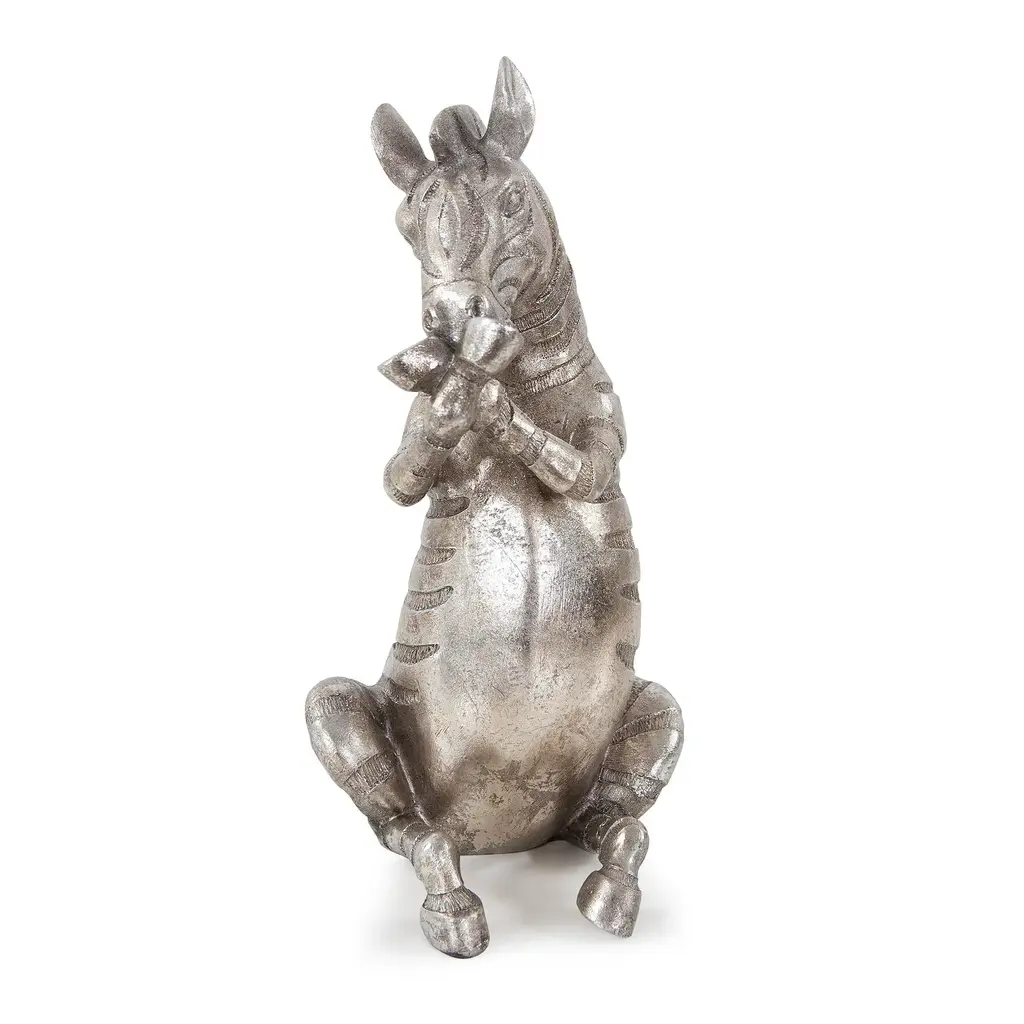 The whimsical Zuri the Zebra comes to life in the classic See No Evil, Speak No Evil, Hear No Evil. Zuri is featured in a antique silver finish with incredible textured stripping. These comical small cast resin sculptures will bring a smile to everyone's face.