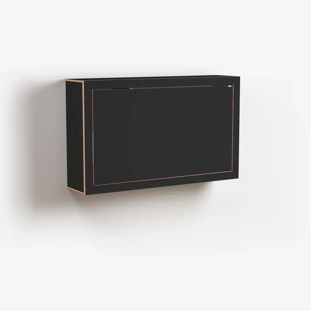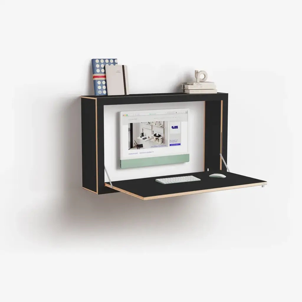 Fläpps Box Desk is a complete workstation – one with room for the monitor, a spacious work surface, and storage space for folders, not just scissors, pens, and paper.Materials: birch plywood coated with coloured HPL, stainless steelDimensions: Folded 100 x 60 x 20 cm + 1 cm wall bracketFolded out 100 x 60 x 68 cm + 1 cm wall bracketLoad capacity: 45 kg