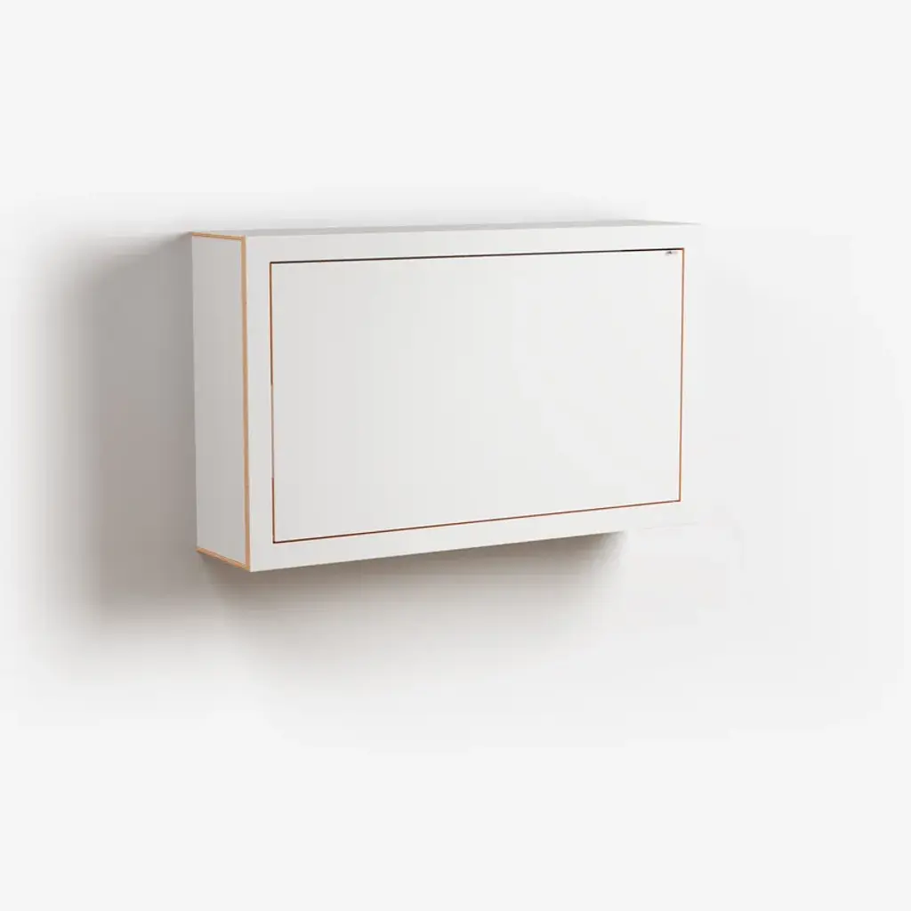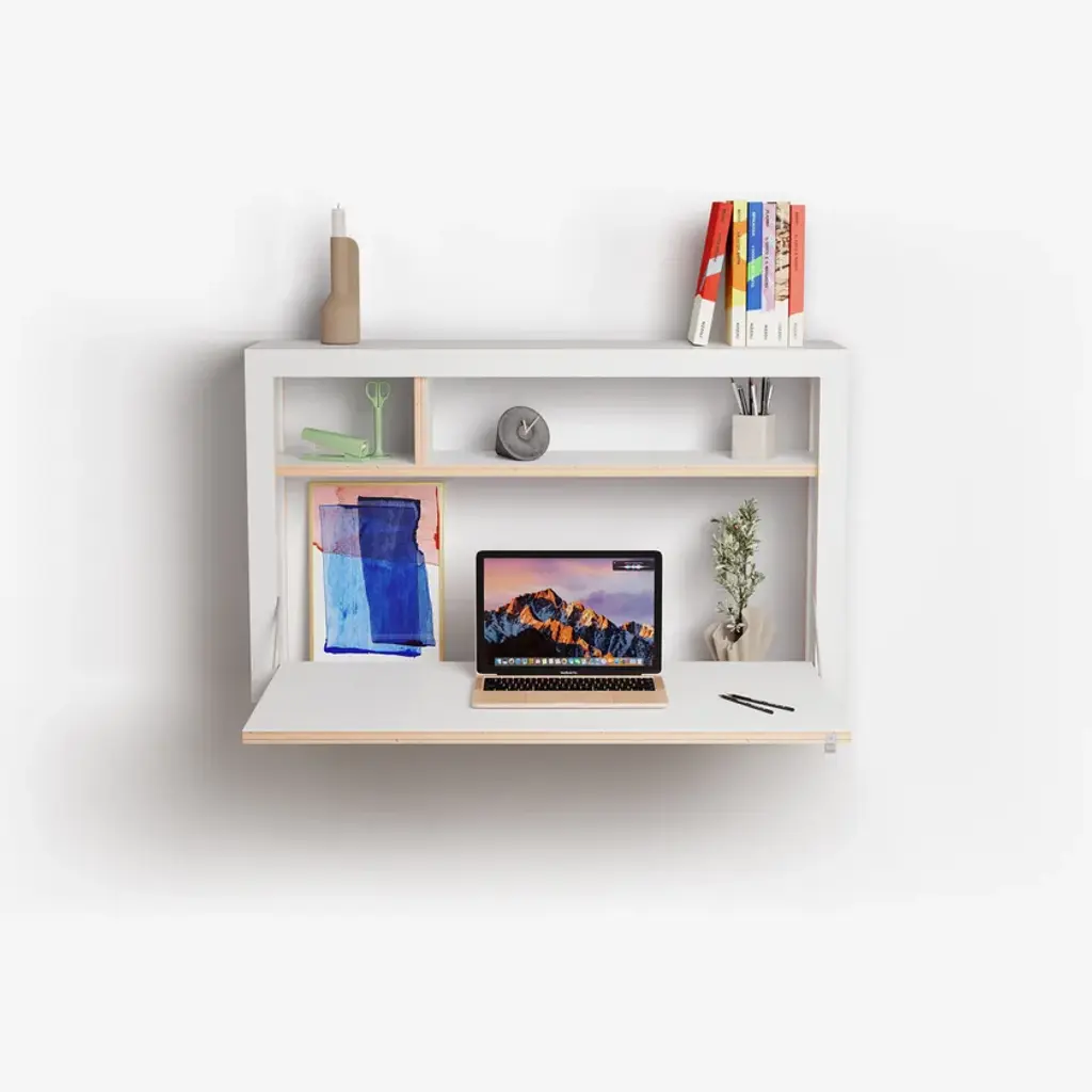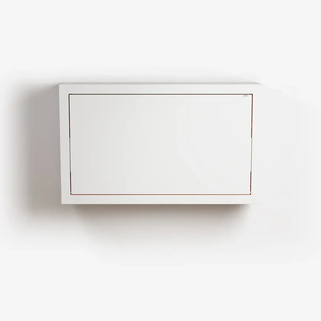 Fläpps Box Desk is a complete workstation – one with room for the monitor, a spacious work surface, and storage space for folders, not just scissors, pens, and paper.Materials: birch plywood coated with coloured HPL, stainless steelDimensions: Folded 100 x 60 x 20 cm + 1 cm wall bracketFolded out 100 x 60 x 68 cm + 1 cm wall bracketLoad capacity: 45 kg