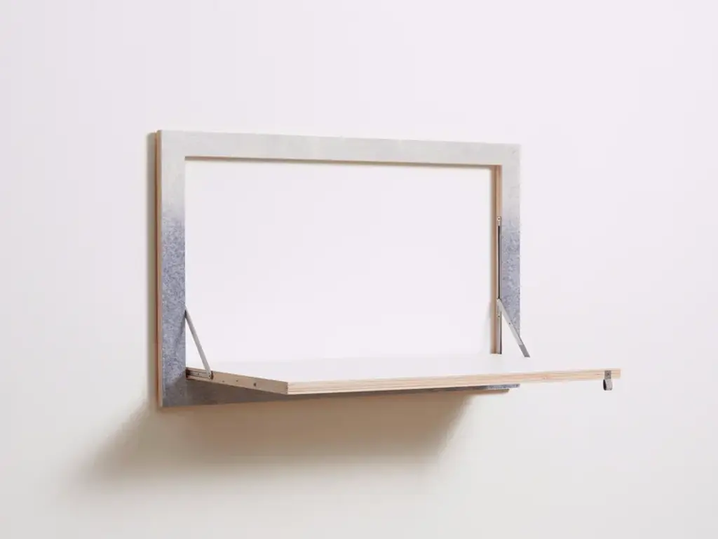 Functional and discreet, this Fläpps wall desk makes the perfect seated or standing workstation depending on the height it is mounted on the wall. When the work is done, simply fold it away. The Fläpps Wall desk leaves no space for unfinished work!Why not combine the Workstation with other Fläpps products to provide additional storage.The whole Fläpps-Collection is printable and combinable with each other. That gives anyone the freedom to individually compose their wall-setup, and change it whenever they are undecided. A wall mounting mechanism, especially designed for this purpose, makes it possible. It consists of two wooden slats that can effortlessly be connected to the wall by using the provided stencil. After that Fläpps can be mounted safely and stable. In this way no abrasion occurs to the product while mounting and demounting so nothing stands in the way for undecided people. No matter how often they like to move or reposition their product. AMBIVALENZ - STAY UNDECIDED!Material: birch plywood, stainless steelDimensions: Folded 80 x 50 x 2 cm + 1 cm Wall Mount / Desk unfolded: 70 x 40 cmFinish: Lacquer