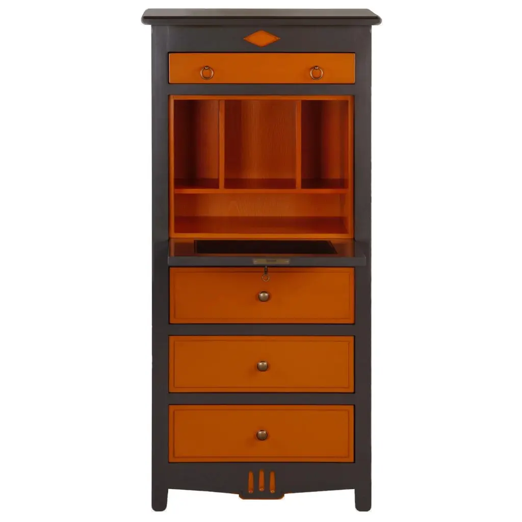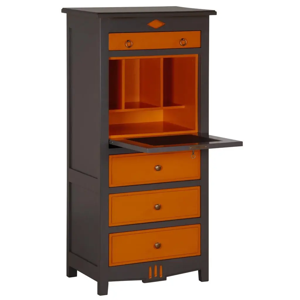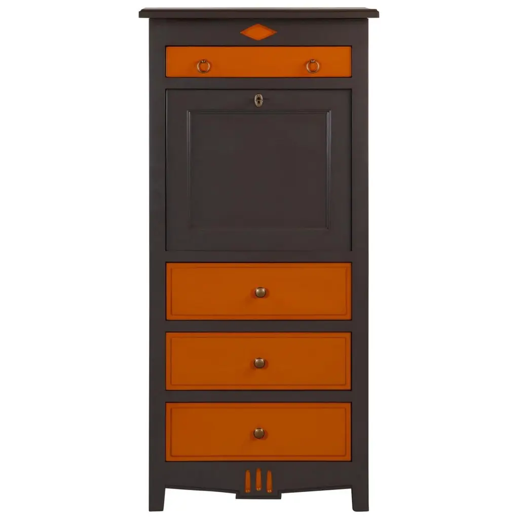 French Directoire Style Narrow Secretary Desk In Wood, Orange Gray Lacquered