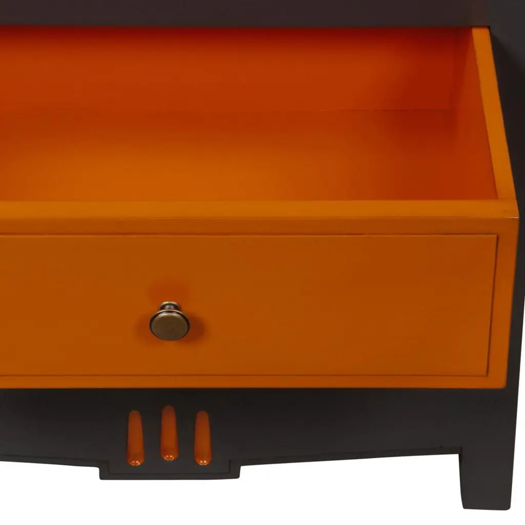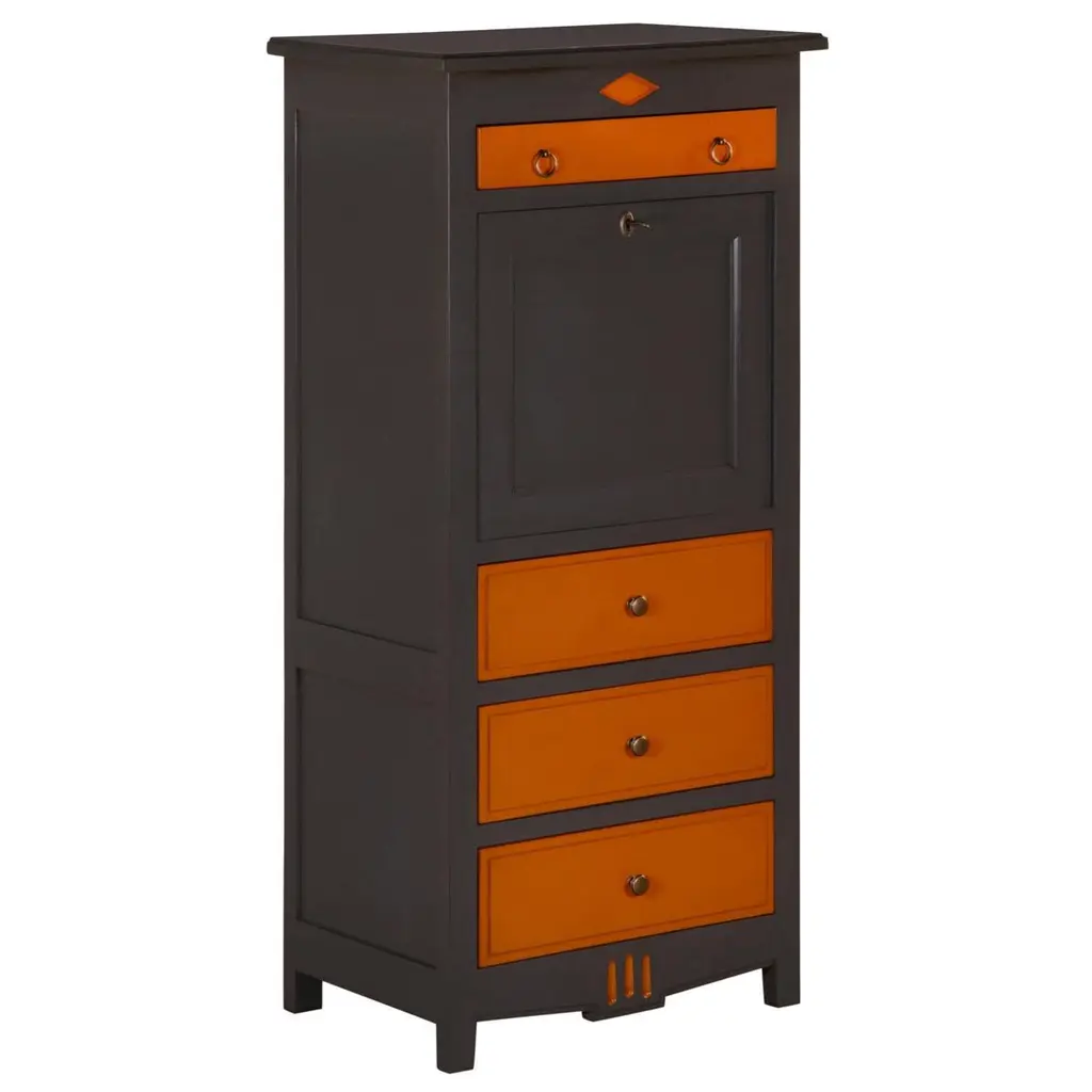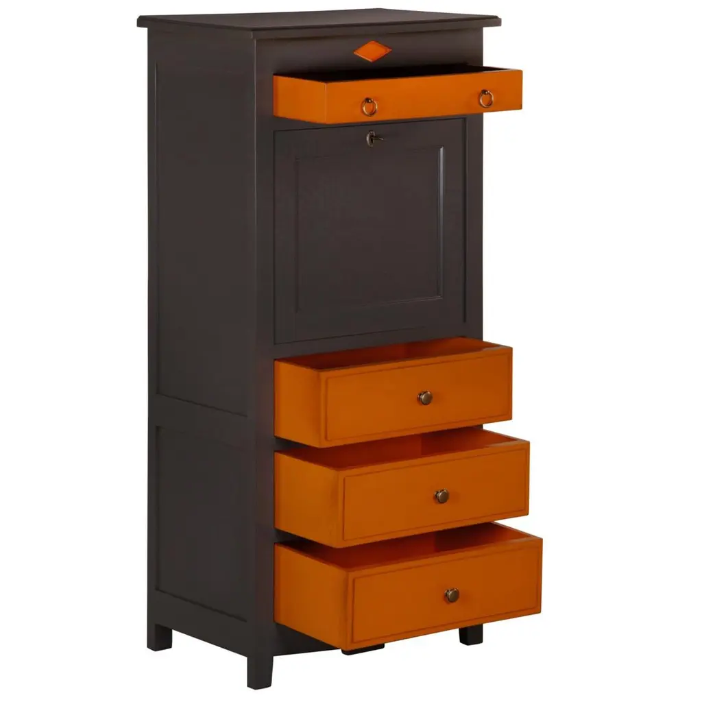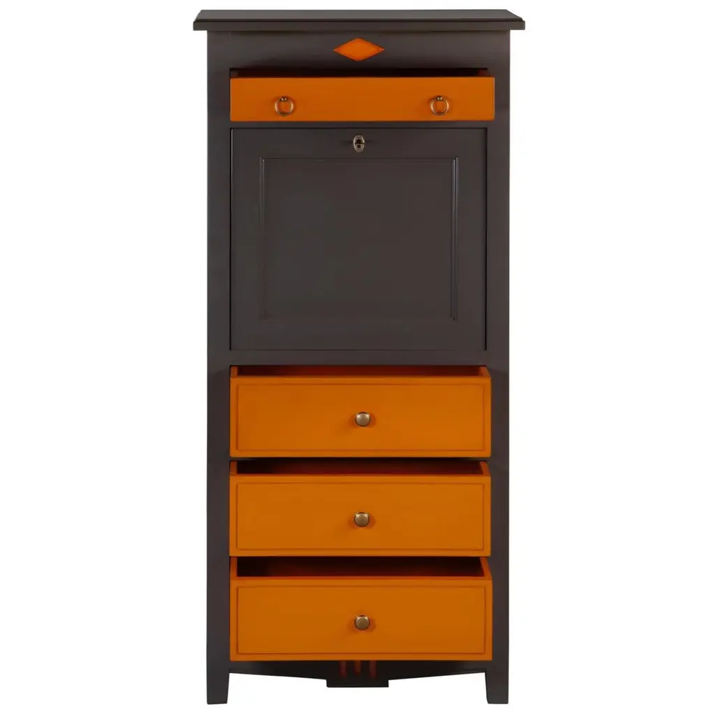 French Directoire Style Narrow Secretary Desk In Wood, Orange Gray Lacquered