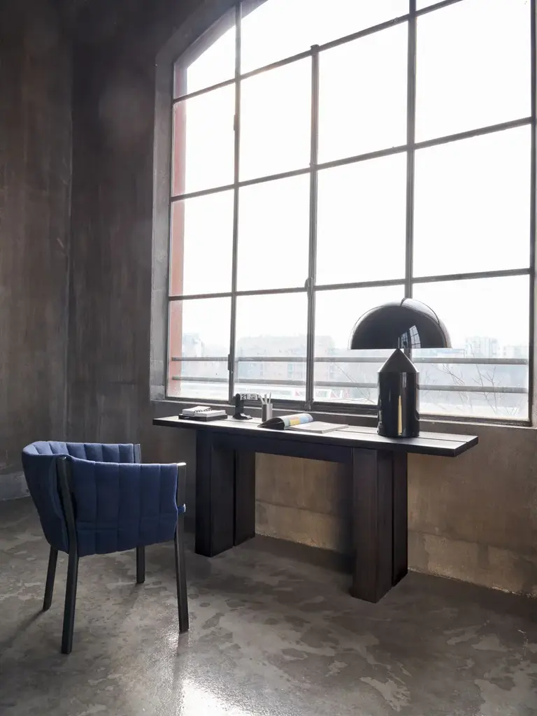 Desk made of MDF covered with multilaminar wood veneer in three special colors.Yaku is a collection characterized by linearity, simplicity and elegance, in which wood and its grain play a starring role. The dining table, bench and desk are made of MDF covered with multilaminar wood veneer in three special colors. Available in two sizes. Transparent matte finish.