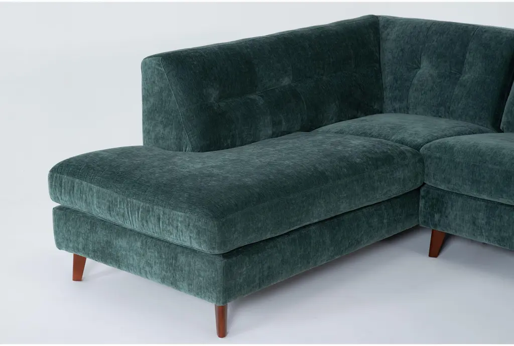 Allie Midnight Jade Green Fabric 108" 2 Piece L-Shaped Sectional With Left Arm Facing Corner Chaise & Armchair | Tufted