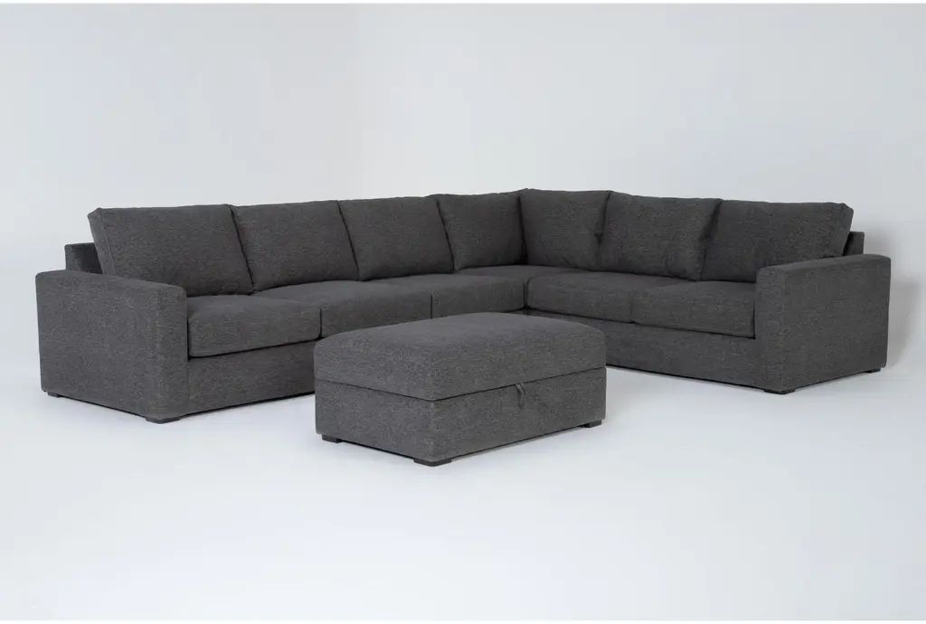 Araceli Ii Pewter Grey Black Fabric Modular 4 Piece L-Shaped Sectional & Ottoman | Loose Reversible Back