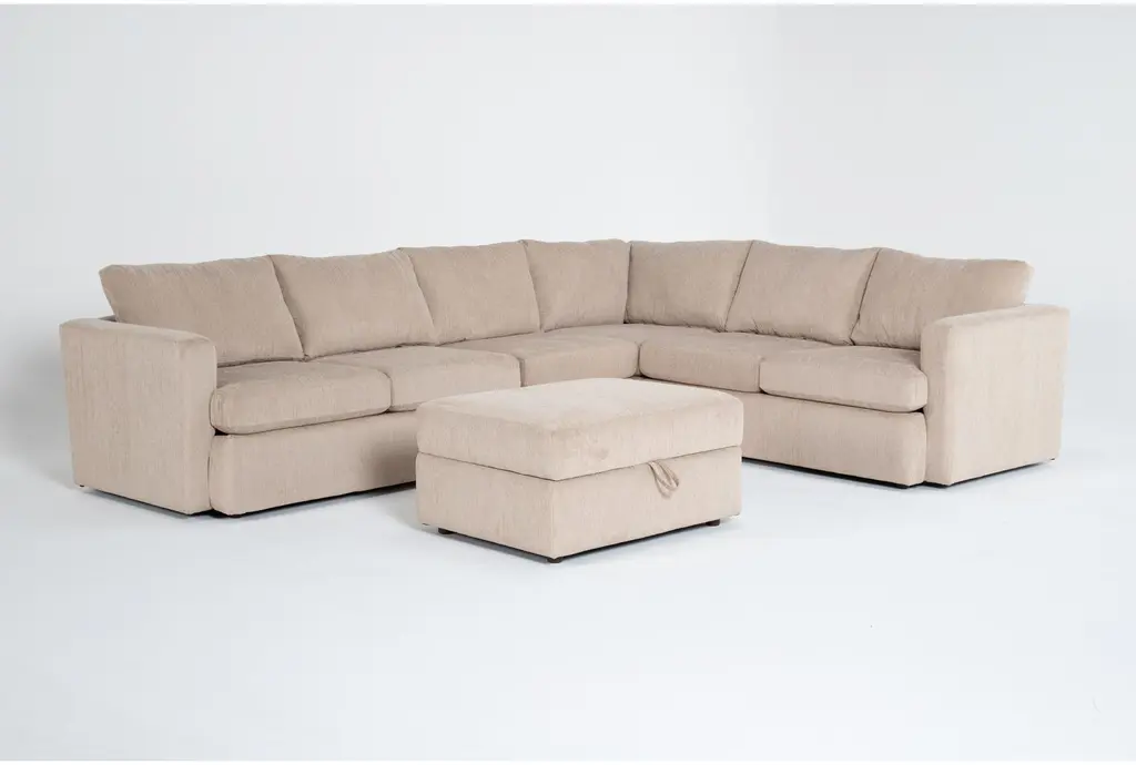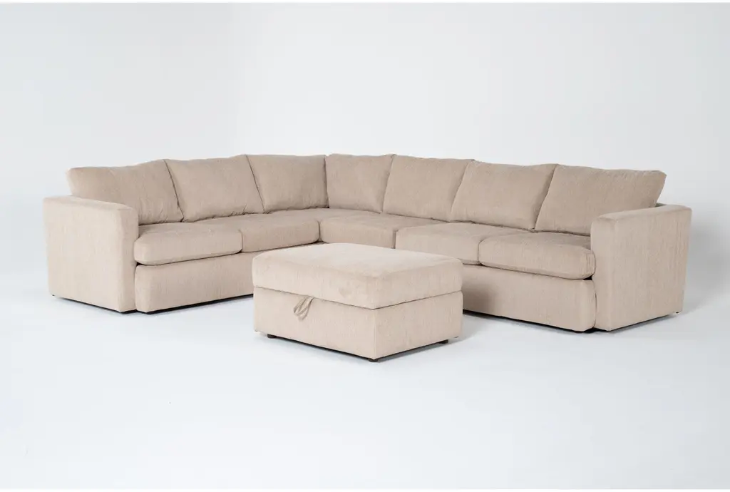 Basil Putty Beige Fabric Modular 125" 4 Piece L-Shaped Sectional & Ottoman