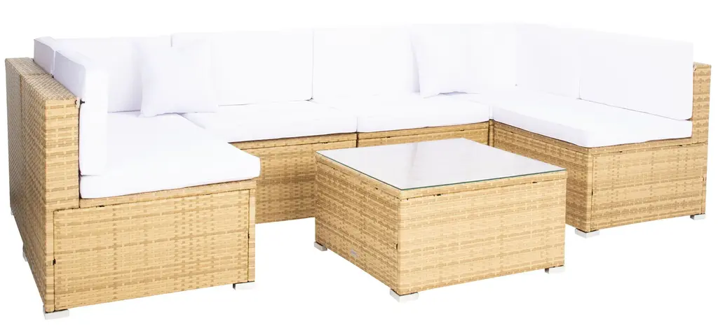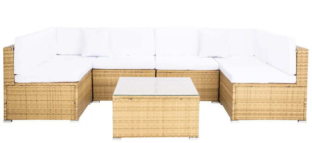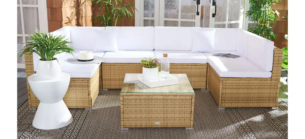 The living room sectional moves outdoors with fabulous modern flair in the Noreen 3-pc. Outdoor Sectional Set. Strong and chic, Noreen's texture rich black frames support luxurious cushions, making for lavish outdoor lounging. Noreen includes a matching glass topped coffee table to complete the look.