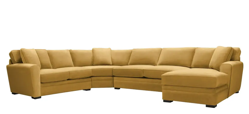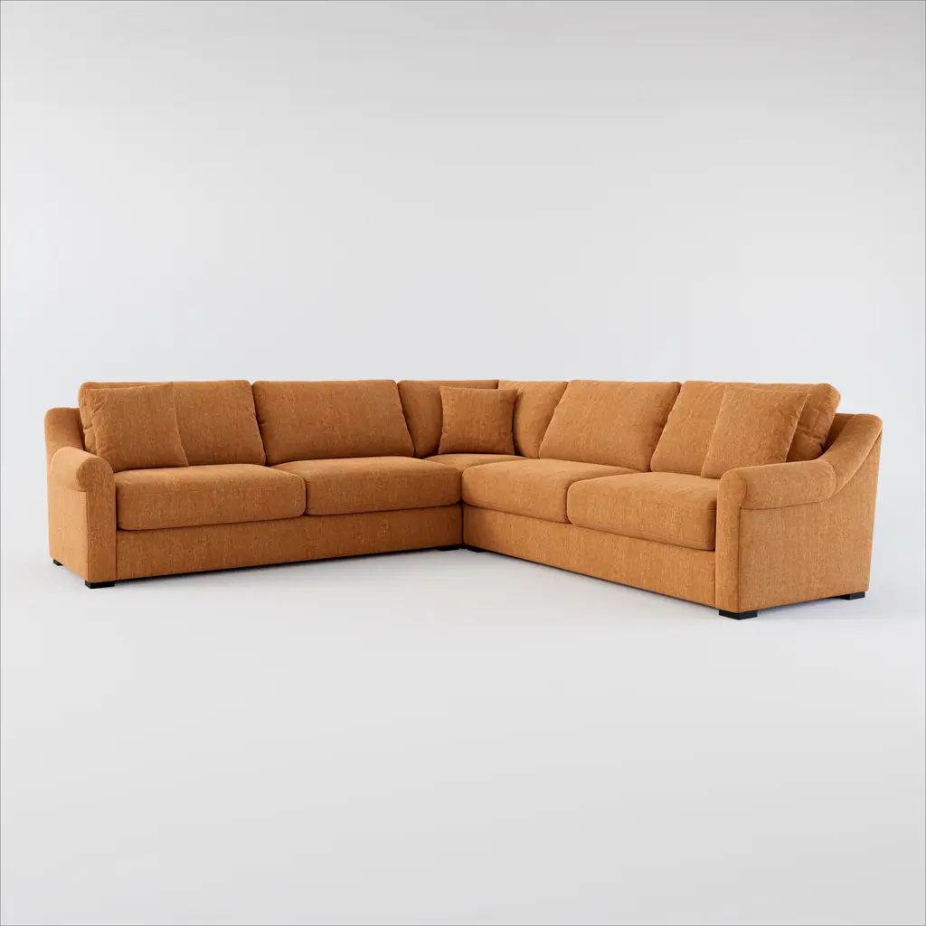 Xena 125" Tan Gold Orange Fabric 3 Piece Memory Foam Modular Sectional | Ottoman