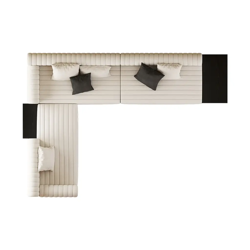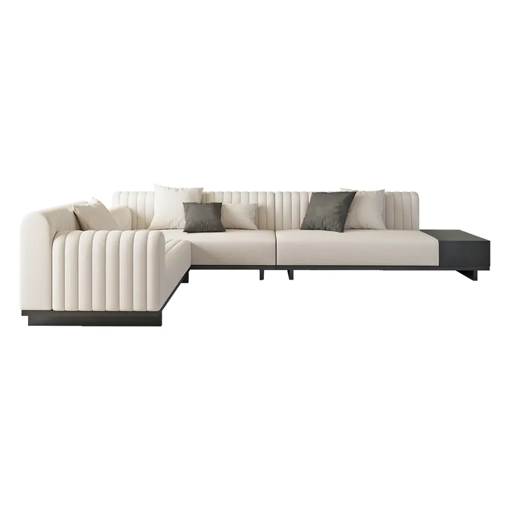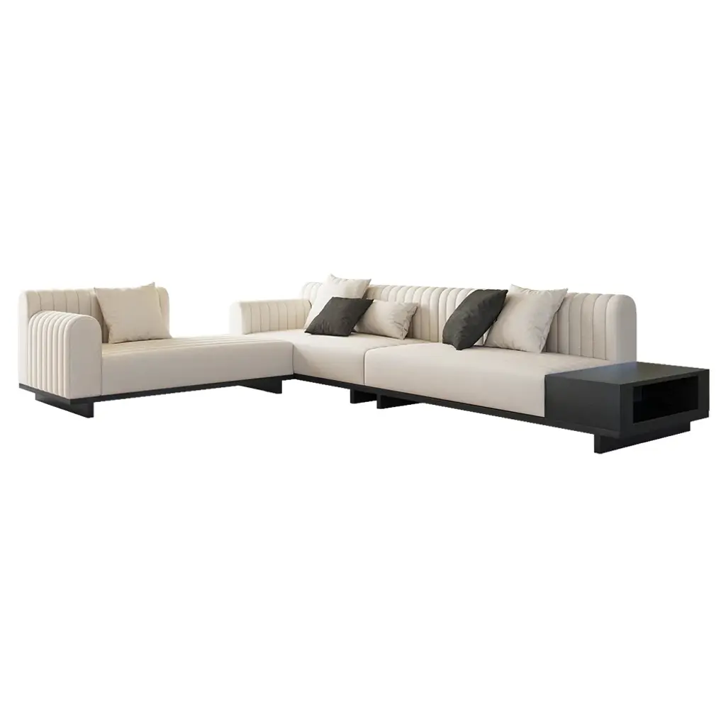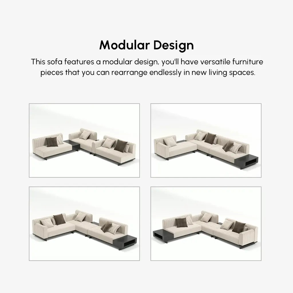 Embrace modern living with this spacious sectional sofa, designed for flexibility and comfort. Its cotton-linen upholstery ensures airflow and softness, creating an inviting spot for family moments or entertaining friends effortlessly.