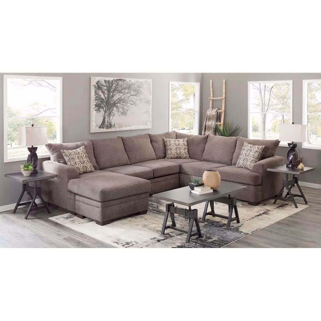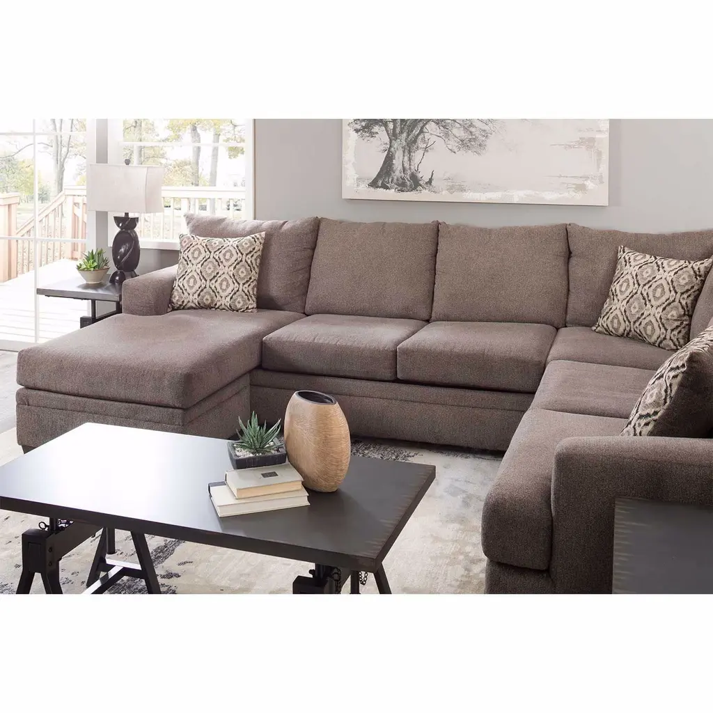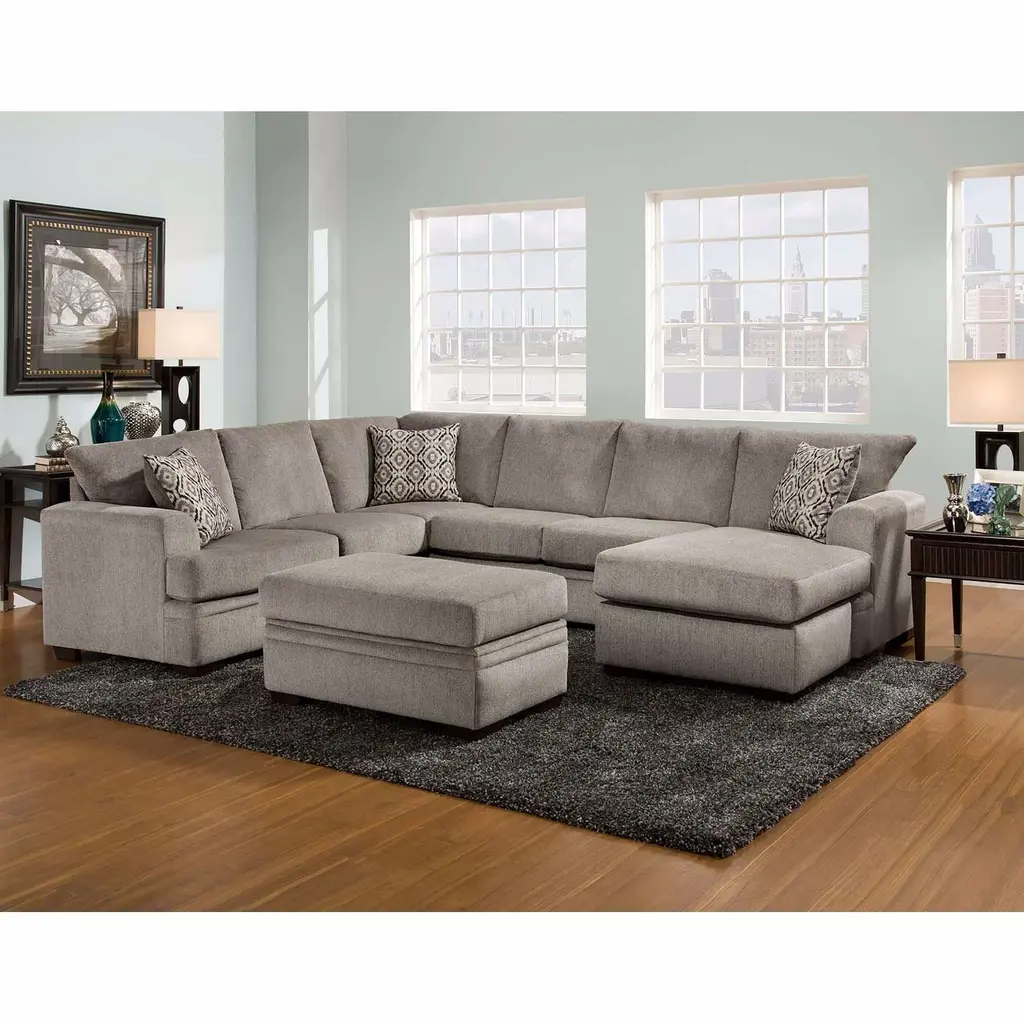 Get comfortable on the Two-Piece Right-arm Facing Pewter Sectional with Chaise from the Cornell Sectional Collection by Peak Living. It features a sleek, contemporary design with clean lines, slightly rounded arms, and a plush back. It is covered in soft, 100% polyester chenille in a stylish pewter color. Three contrasting accent pillows are included with the sofa to add a pop of color and texture. The chaise lounge on this versatile sectional can be positioned to be left-arm facing or right-arm facing.