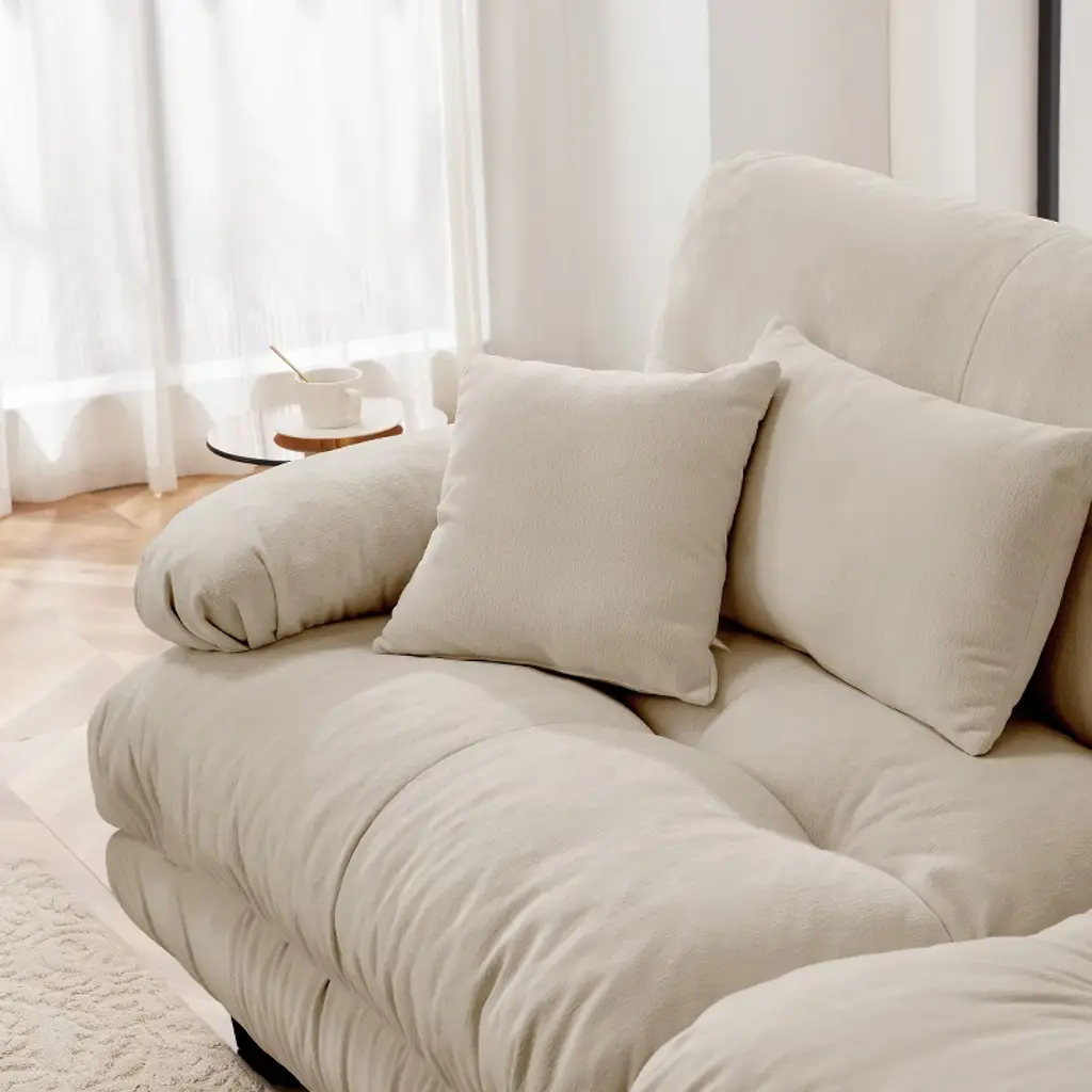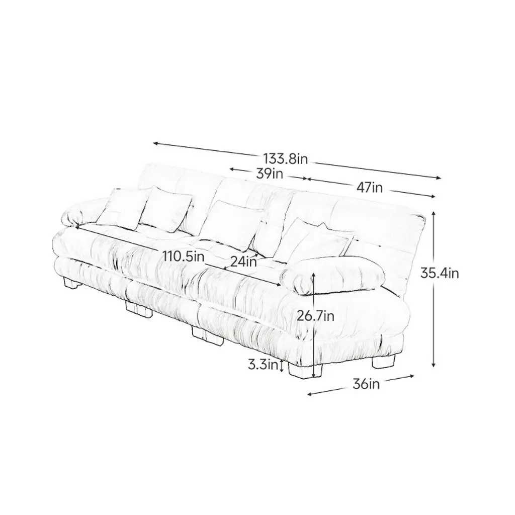 Transform your living space into a haven of relaxation with this Oversized Chenille Cloud Sofa. This luxurious 3-seater couch is designed for ultimate comfort and style, featuring soft, durable, and elegant vintage Chenille fabric that provides a cozy seating experience in any season. The exquisite round bolster armrests add a touch of sophistication to your living room decor while offering comfortable support for your hands and head. The cloud-like seat cushions, free from springs or wood, provide exceptional support and elasticity, conforming to your body for unparalleled relaxation. The deep seat design offers additional support for your waist, ensuring comfort during extended periods of lounging. Included throw pillows enhance the overall aesthetic and provide extra cushioning. The flexible combination allows you to adapt the sofa to your needs and space, while the simple and clean back design ensures versatile placement in any room. Filled with high-resilient sponge and doll cotton, the seat cushions provide a soft and comfortable feel, truly making you feel like you're sitting on a cloud. Whether you're relaxing with family, enjoying a good book, or entertaining guests, this sofa offers the perfect blend of comfort and style. Please note that all cushions and pillows are vacuum-packed for easy transportation and may take 2-7 days to fully expand to their original shape.