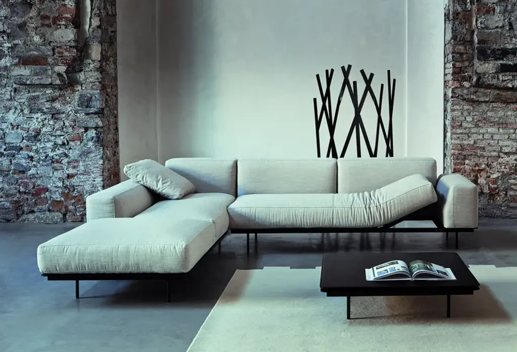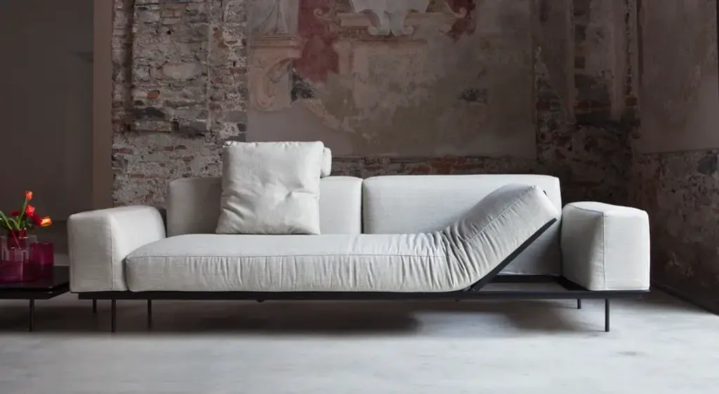 535 Sit Up is a modular custom sofa, available with completely removable covers in cotton, linen, leather or with custom covers.The sofa is manufactured with a metal and wood plastic composite structure and has been designed with the utmost attention to style, fineness, quality and care for details that are typical of Interior Design Made in Italy.Technical featuresFrame base: Epoxy powder coated metal.Back/arm/end element frame:Composite woods.Springing: Elastic bands.Back/arm/end element padding:Polyurethane foam with different densities covered with heated bonded polyester fibre.Seat cushions: Polyurethane foam with different densities with memory foam covered with heated bonded polyester fibre.Seat mechanism: Adjustable in 5 positions.Feet: Epoxy powder coated metal.Cover: Fabric or leather cover. Fabric cover completely removable.All combinations are available on request to the Customer Service.