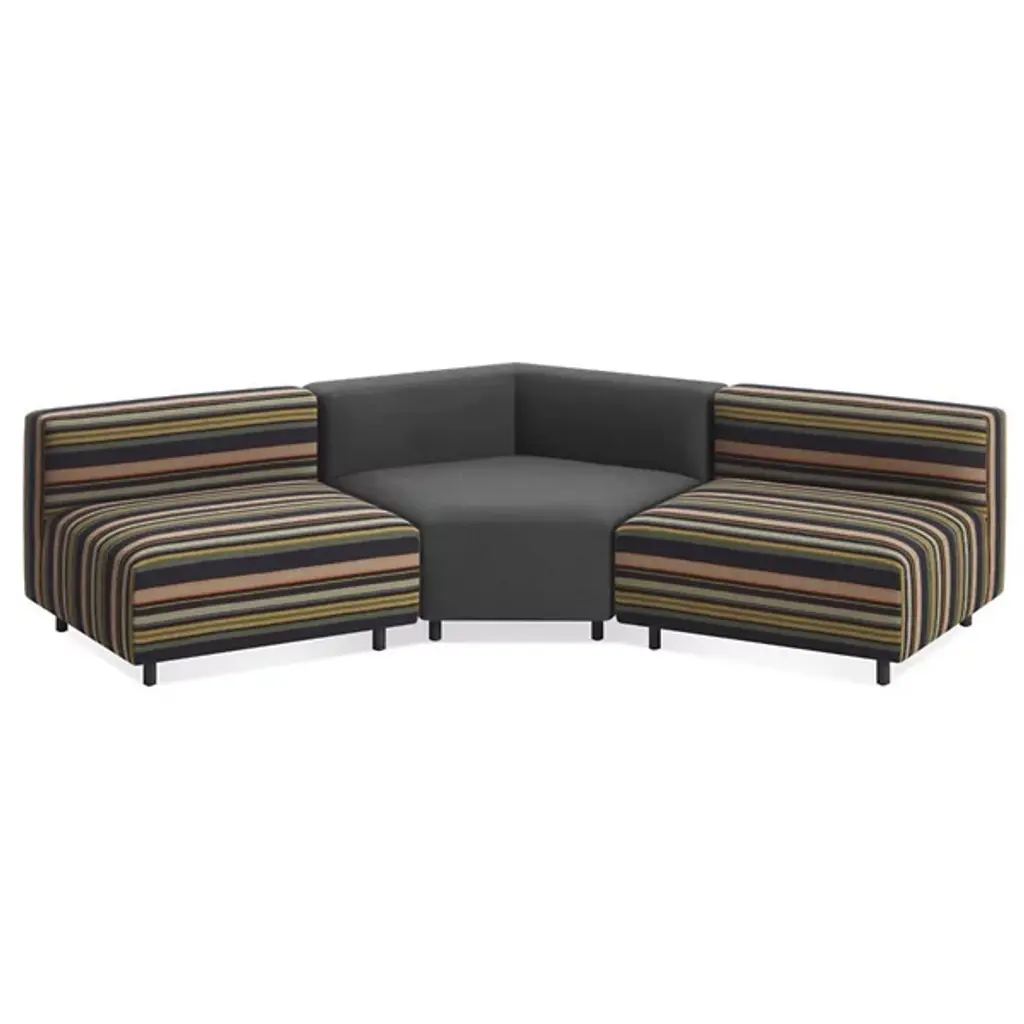 The 9 Yard Outdoor Armless Angled Sectional Sofa from Blu Dot is crafted with premium materials, this sectional sofa features Sunbrella fabric upholstery, renowned for its resistance to mildew and fading. Designed to be configured as needed, this armless sectional sofa offers versatility to suit various outdoor settings, whether you’re hosting a large gathering or enjoying a quiet afternoon outdoors. This Greenguard Certified sectional is equipped with feet featuring adjustable glides. It is made with a combination of aluminum and mesh.