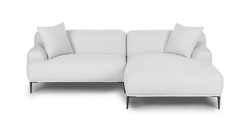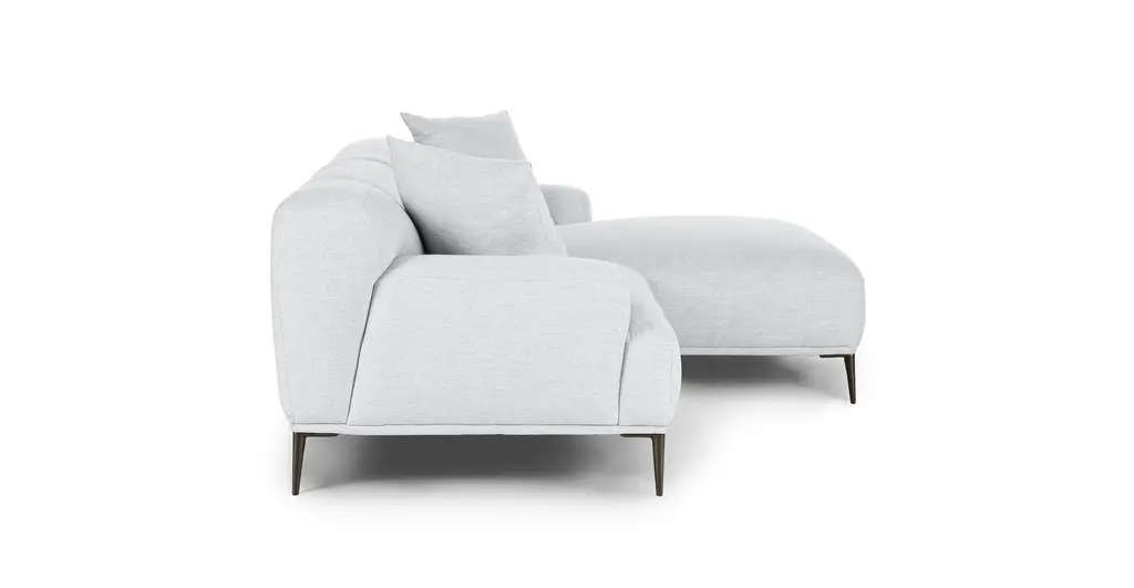 Where were you when you first heard about this sofa? The Abisko sectional is an instant phenomenon with its modern Scandinavian silhouette and generous chaise. This is no lumpy sectional from your childhood basement—the Abisko is a sleek vision of the future. Made with Mist Gray upholstery and minimalist titanium-finished legs, the Abisko is your new favorite place to host everything from your monthly vegan cheese tastings to nightly snuggles with your cat.