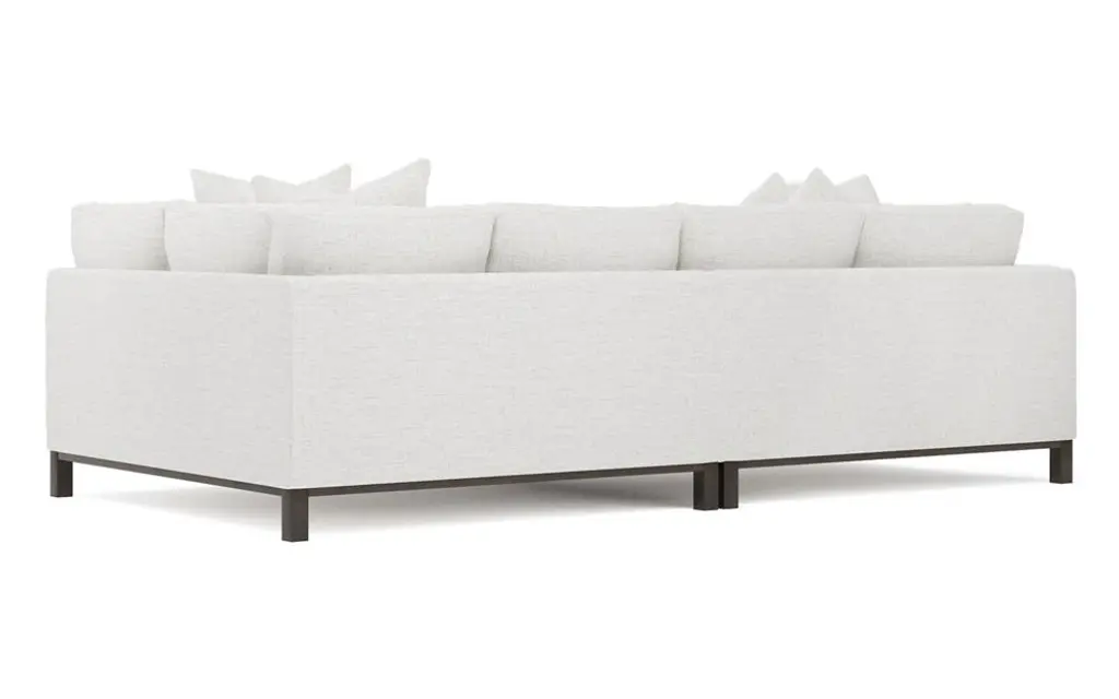 Nestle into the cozy comfort of the 116” Adelle double bumper sectional. With an extra-deep seat, gently angled arms, and large throw pillows, it's the ultimate lounge sectional for any TV room. A beautiful wood rail grounds the timeless transitional silhouette. Plush, comfortable seating is soft yet supportive, with a foam core surrounded by a blend of fiber, down, and feather fill. Choose from a variety of upholstery options, including linen, velvet, and performance fabrics.