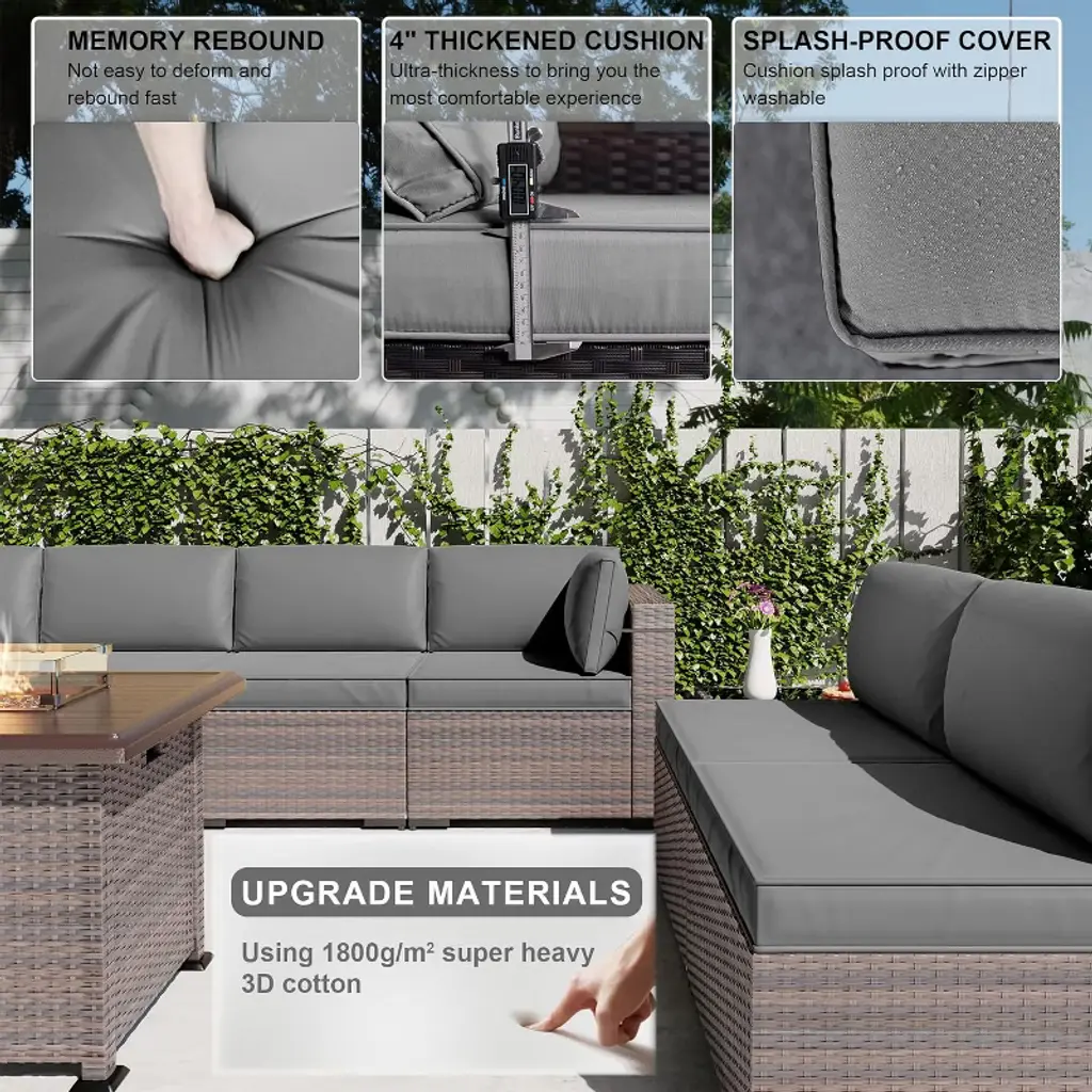 Alaulm 15pcs Outdoor Patio Furniture Set With Gas Propane Fire Pit Table Pe Rattan Sectional Sofa Patio Conversation Sets W/8 Coner Sofas,grey